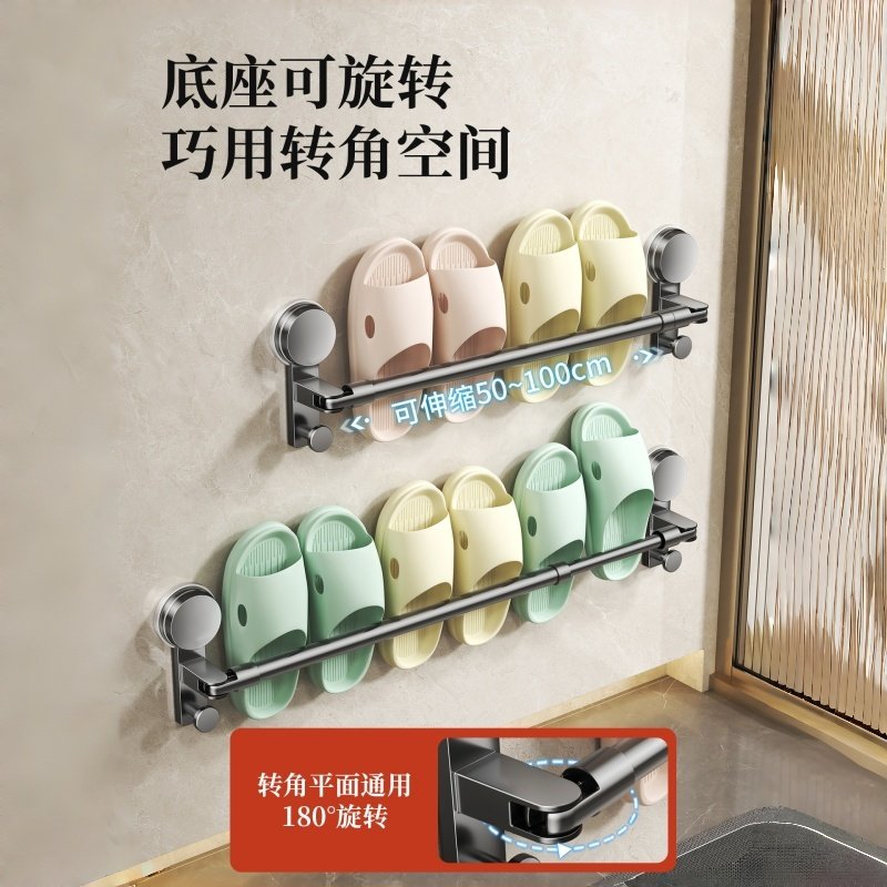 吸盘伸缩拖鞋架浴室置物架卫生间免打孔厕所墙上收纳架壁挂式挂架