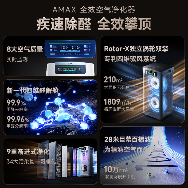 阿卡驰空气净化器家用除甲醛除菌吸烟除异味AMAX空气消毒机P90