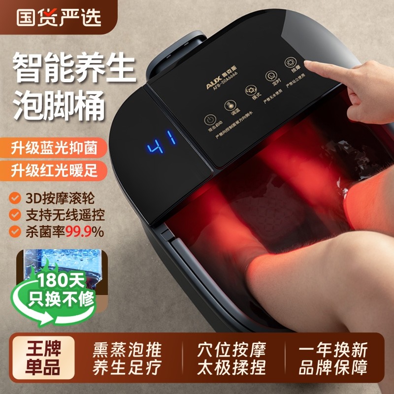 奥克斯泡脚桶全自动电动按摩足浴盆加热家用恒温洗脚盆高深足浴器