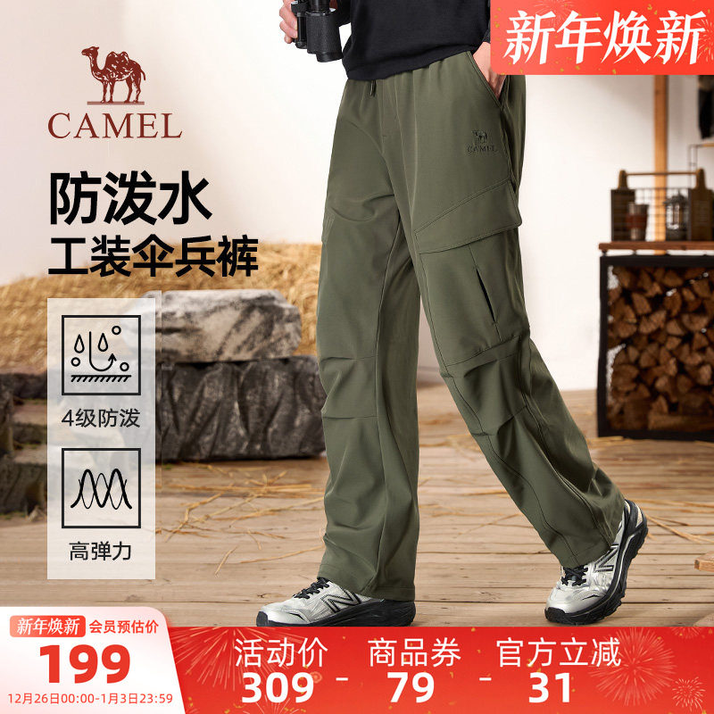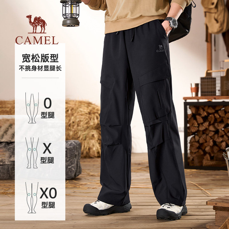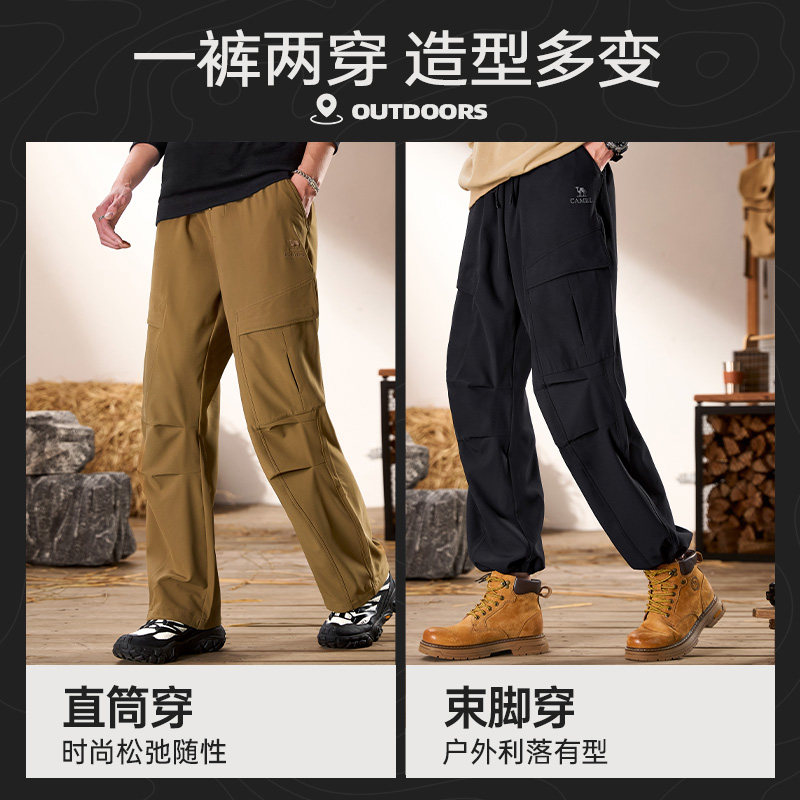 骆驼男装伞兵裤秋季2025新款工装裤男休闲宽松弹力百搭防泼水长裤