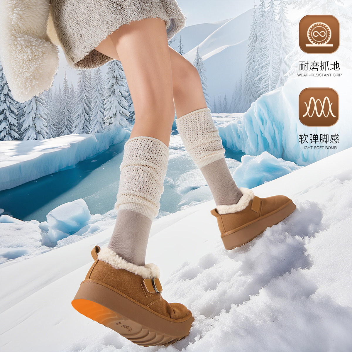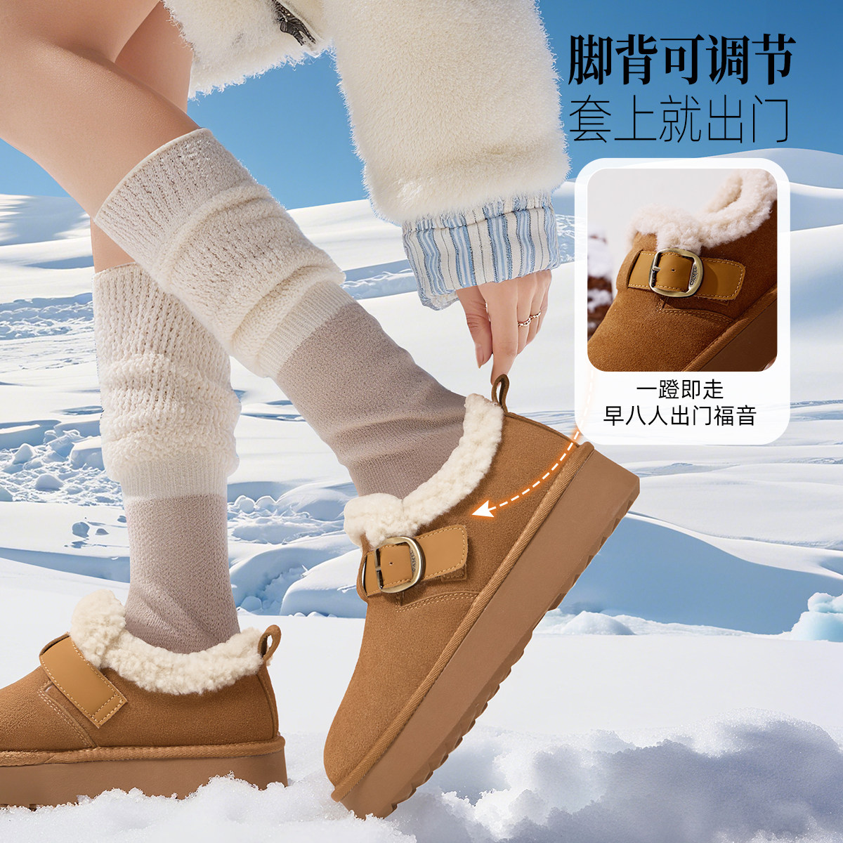 15HZ的鲸厚底雪地靴女2025新款防滑棉鞋女一脚蹬冬季雪地棉女鞋子