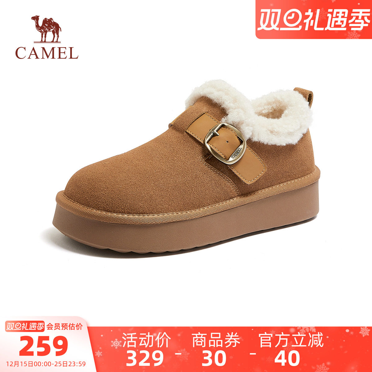 骆驼女鞋2025冬季新款加绒保暖棉鞋女款毛毛鞋厚底休闲勃肯雪地靴
