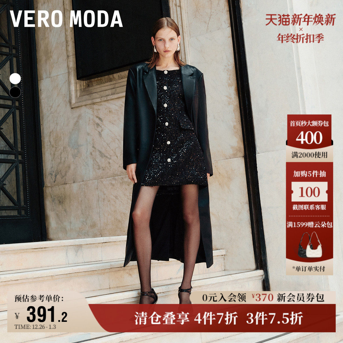 Vero Moda奥莱连衣裙秋冬新款亮片小香风羽毛袖口气质通勤流行