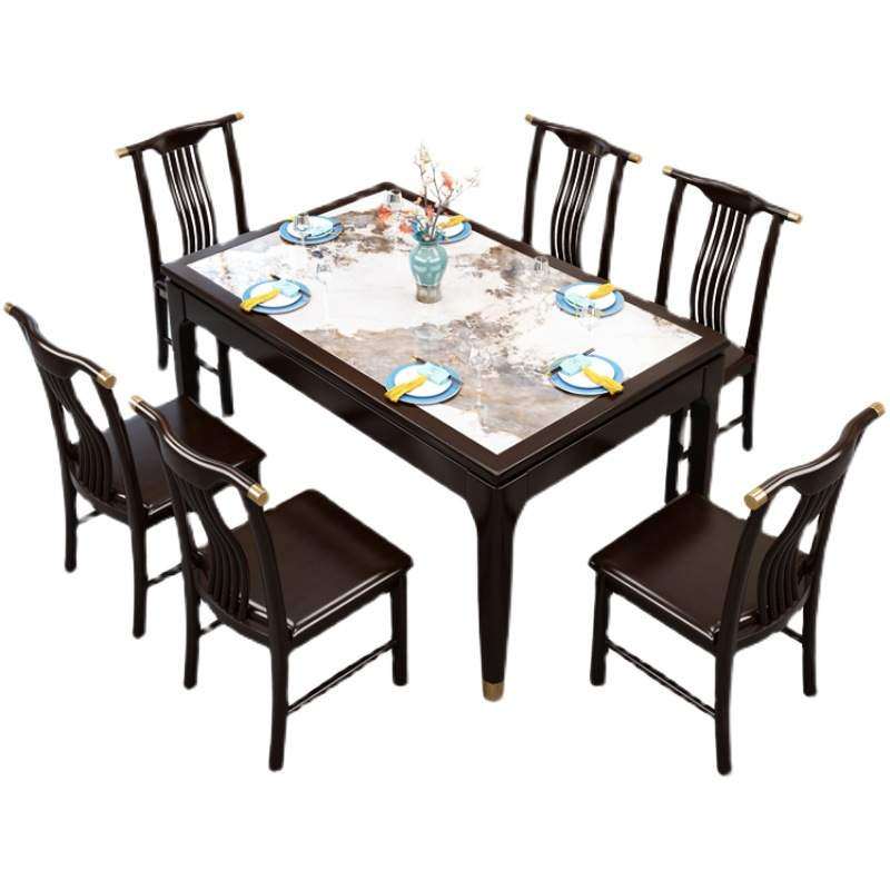 新中式实木岩板餐桌椅组合大理石方桌现代简约小户型家用吃饭桌子