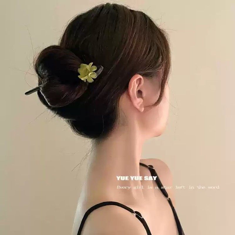 绿色山茶花发簪女古风新中式木簪盘发钗高级感发詹子汉服旗袍头饰