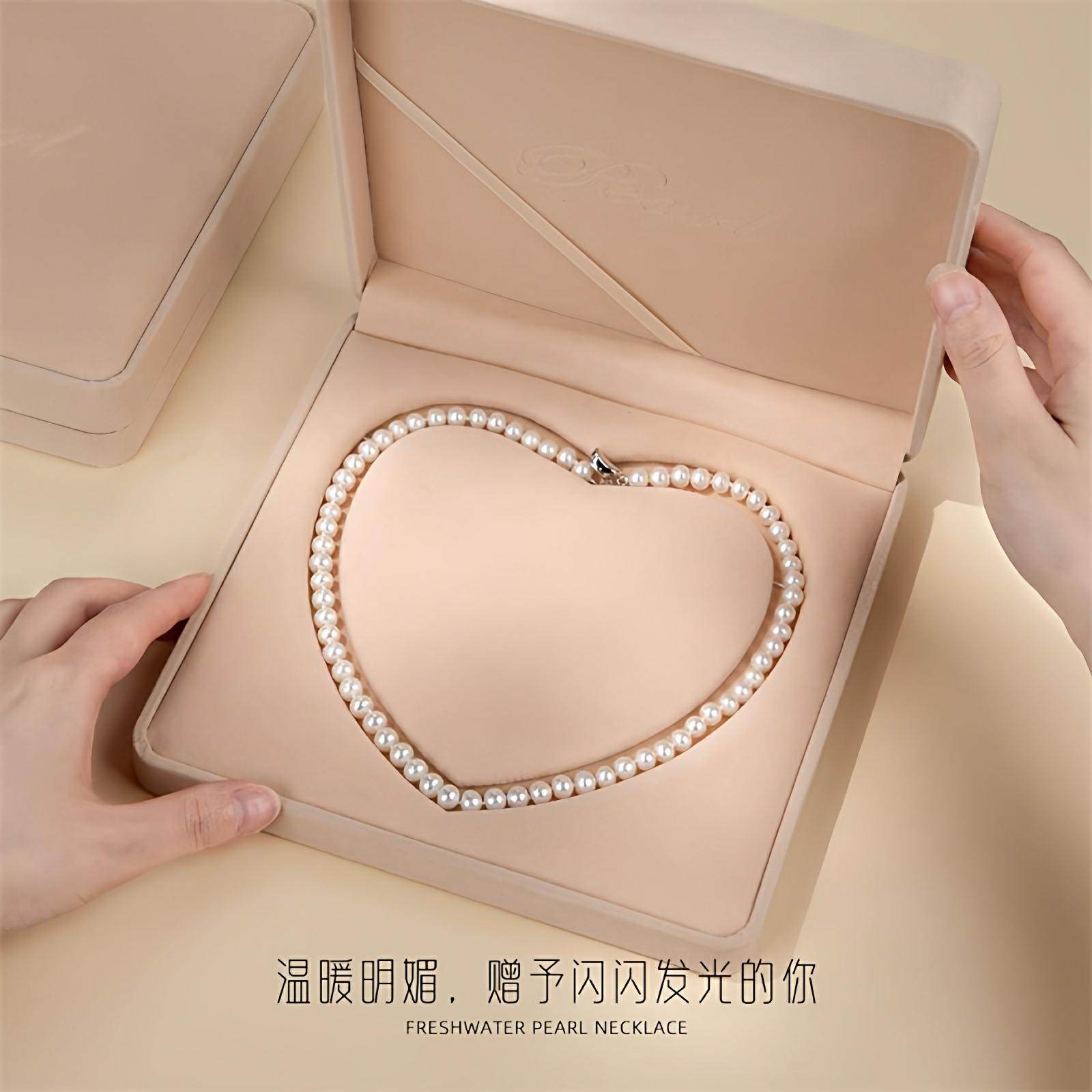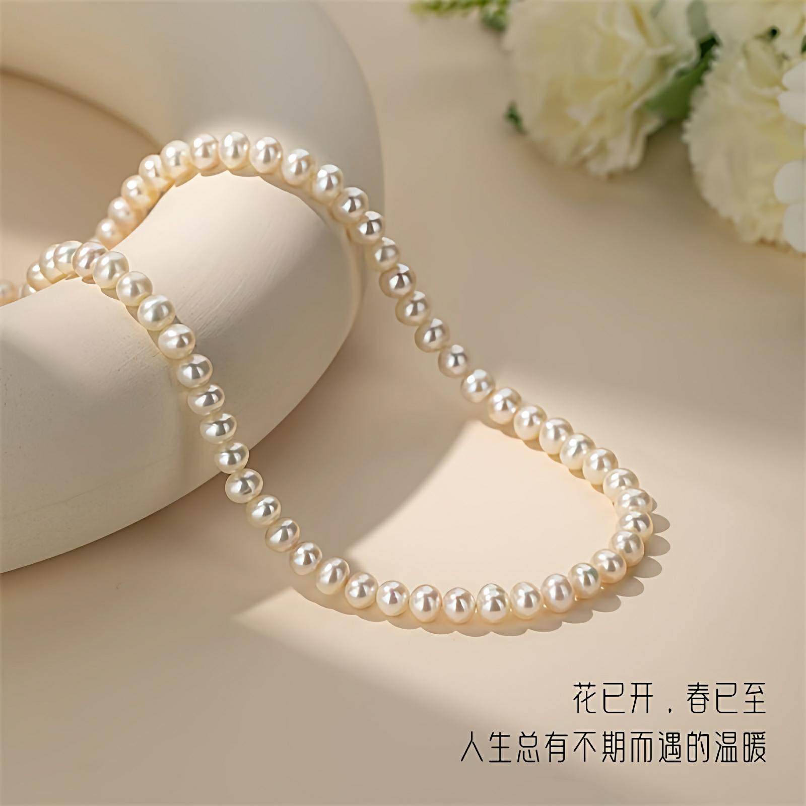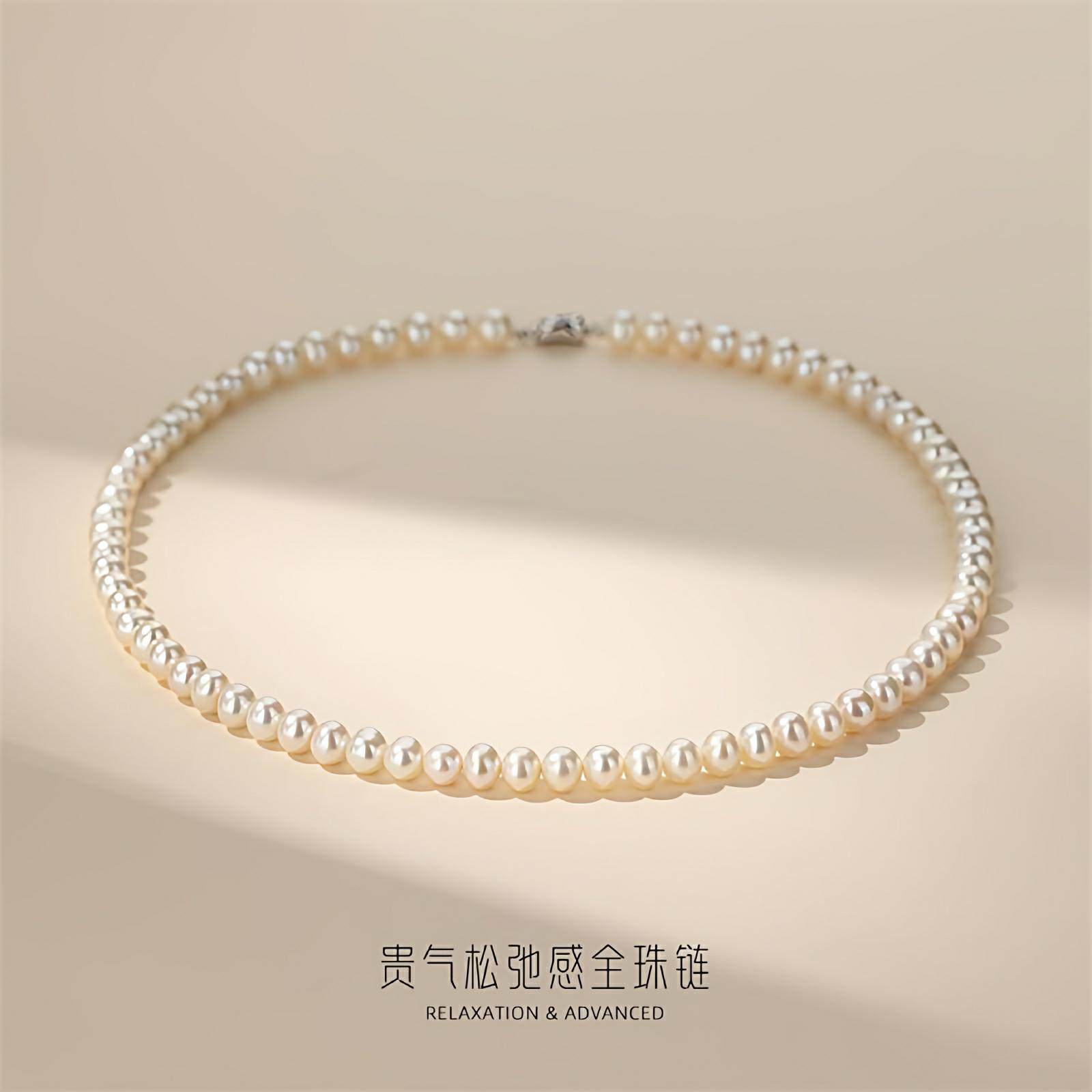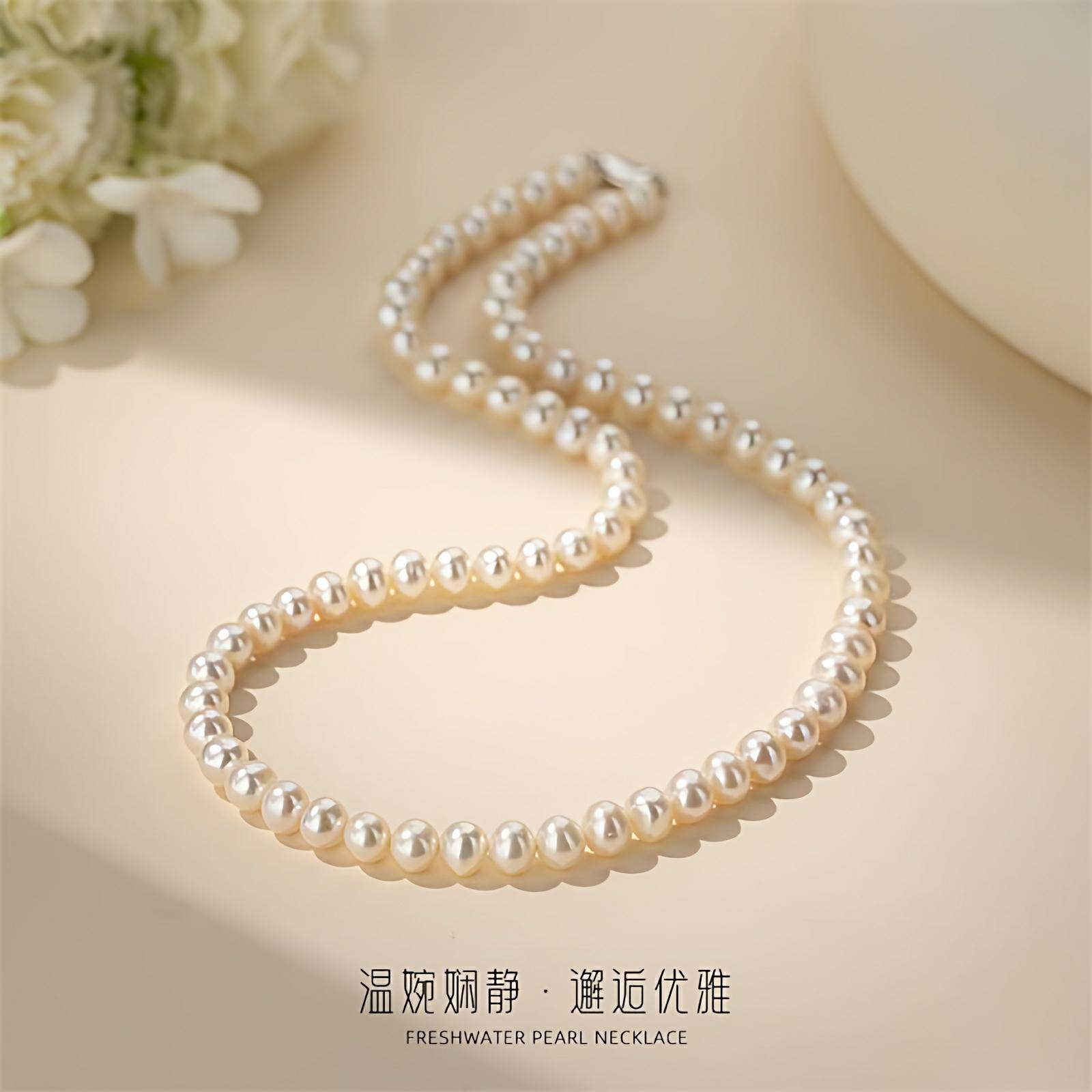 诸暨淡水近圆珍珠项链S925银强光妈妈链简约气质女全珠链节日礼物