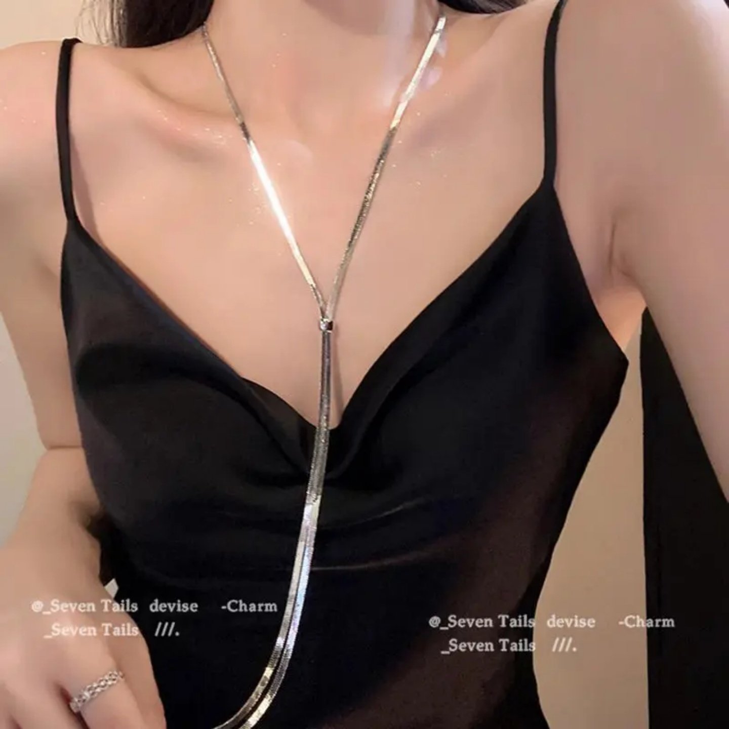 银色水滴吊坠项链女长款轻奢小众钛钢不掉色装饰毛衣链高级感配饰