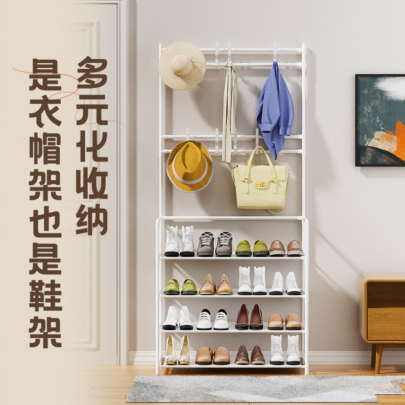 简易落地鞋架衣帽架卧室宿舍挂衣架家用客厅鞋架多功能挂包鞋帽架