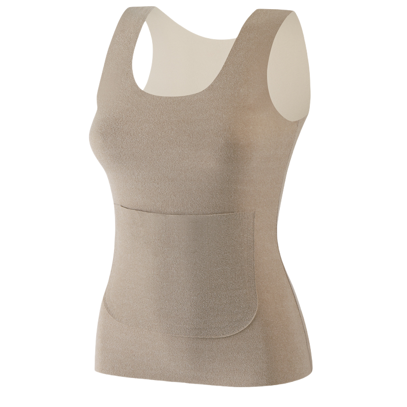 德绒无痕暖腹保暖背心女加口袋双兜防寒护肚护腰打底吊带发热上衣