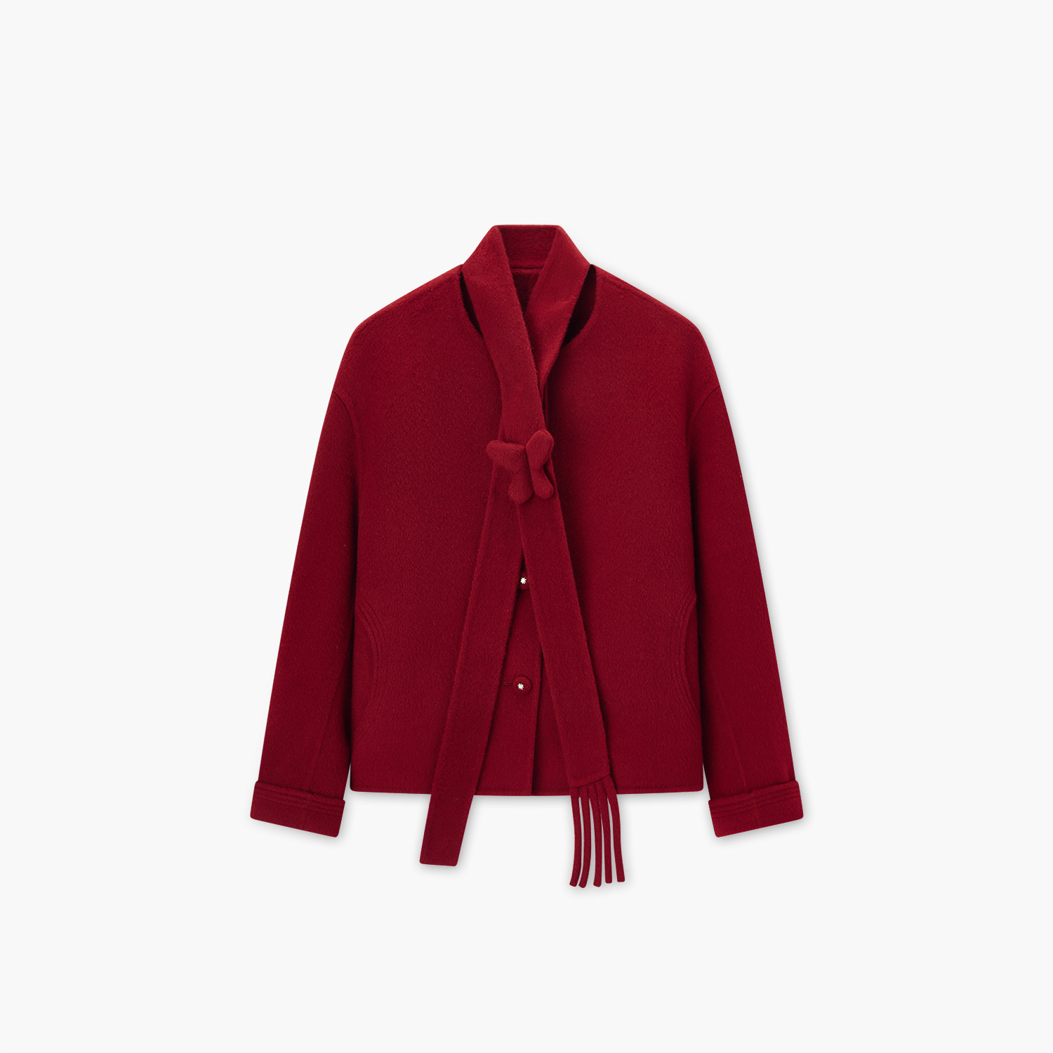 水沐飞高级感酒红色双面羊绒大翻领毛呢大衣女秋冬中长款羊毛外套