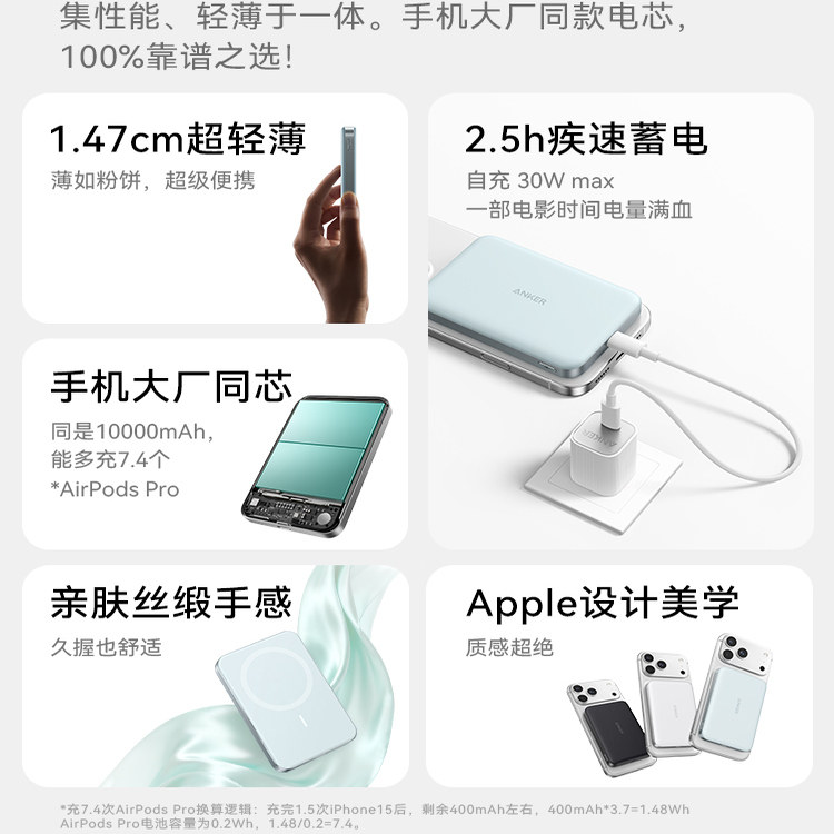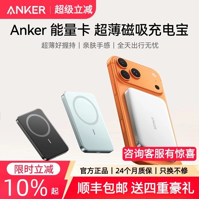 【新国标3C认证】Anker安克MagGo磁吸无线充电宝 10000mAh超薄移动电源可上飞机苹果专用MagSafe适用iPhone17