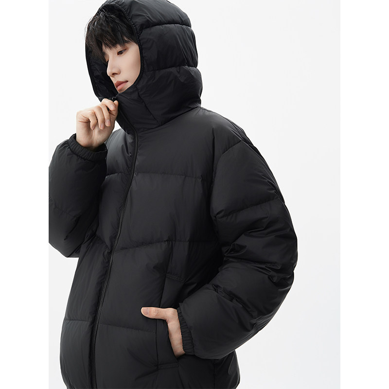 骆驼男装秋冬黑色加厚保暖鸭绒短款面包服男女同款防水羽绒服外套