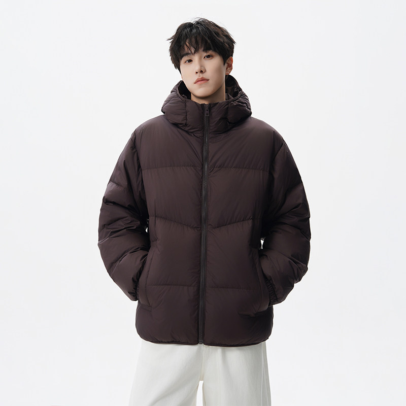 鸭鸭轻薄羽绒服男士2025年秋冬反季短款保暖休闲时尚连帽鸭绒外套