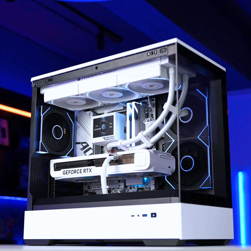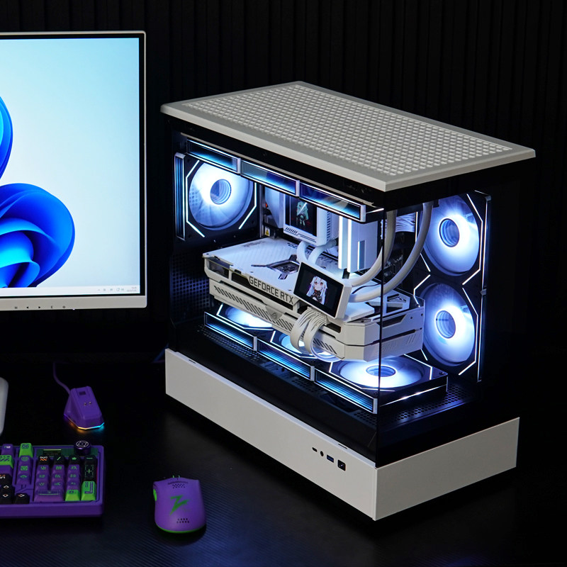 爱国者星璨岚熊猫色小岚海景房机箱电脑台式机MATX侧透鱼缸无立柱