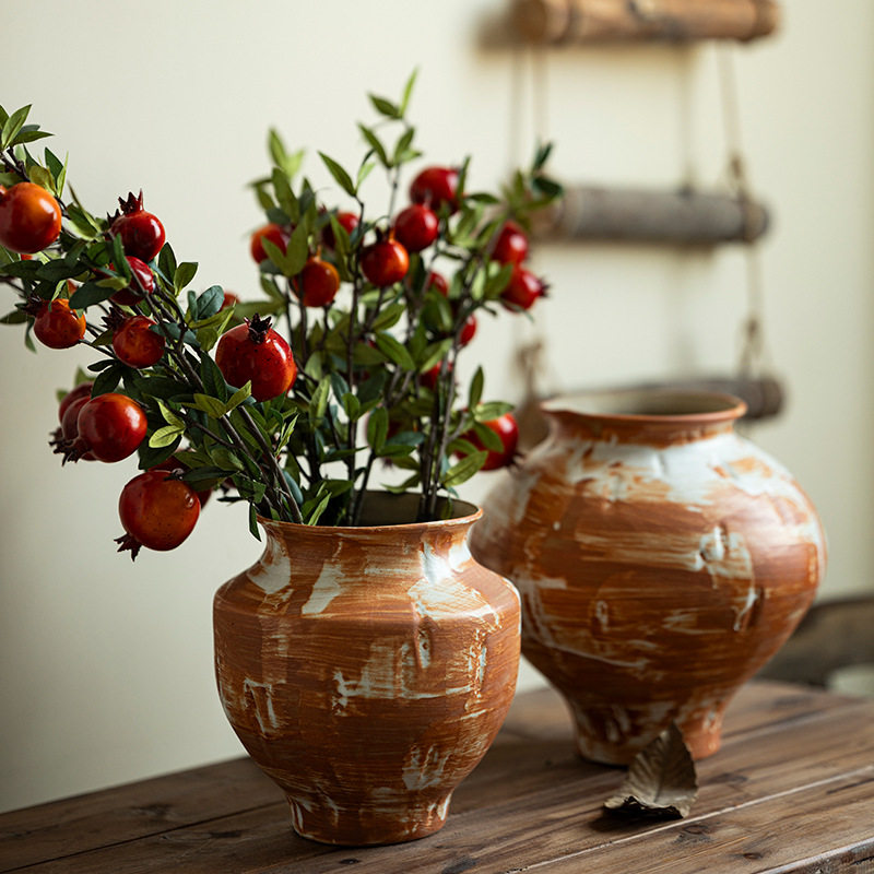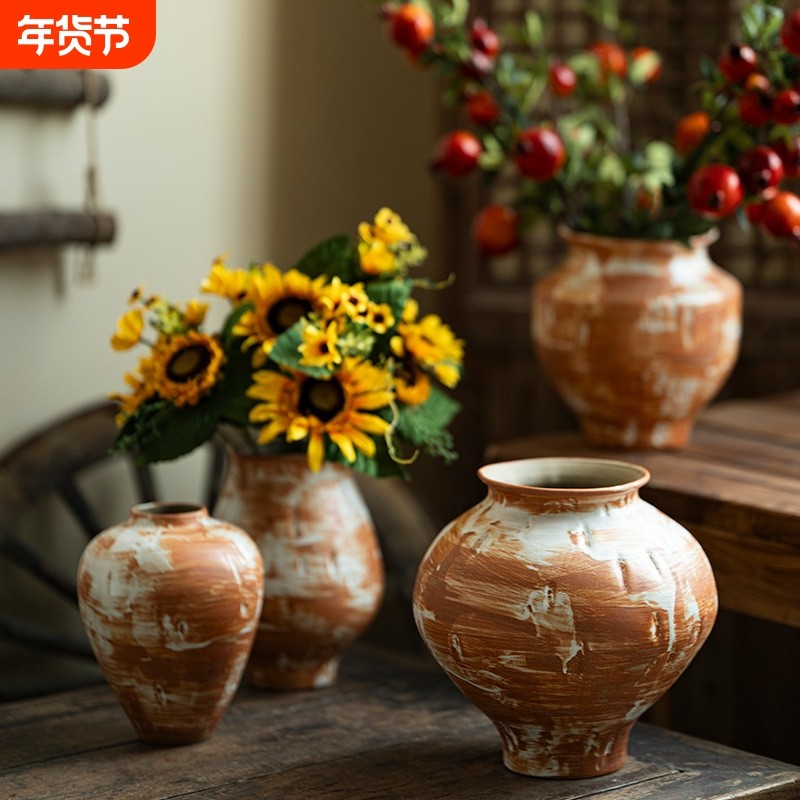 景德镇禅意陶瓷花瓶粗陶瓶插鲜花复古手工民宿酒店侘寂风摆件客厅