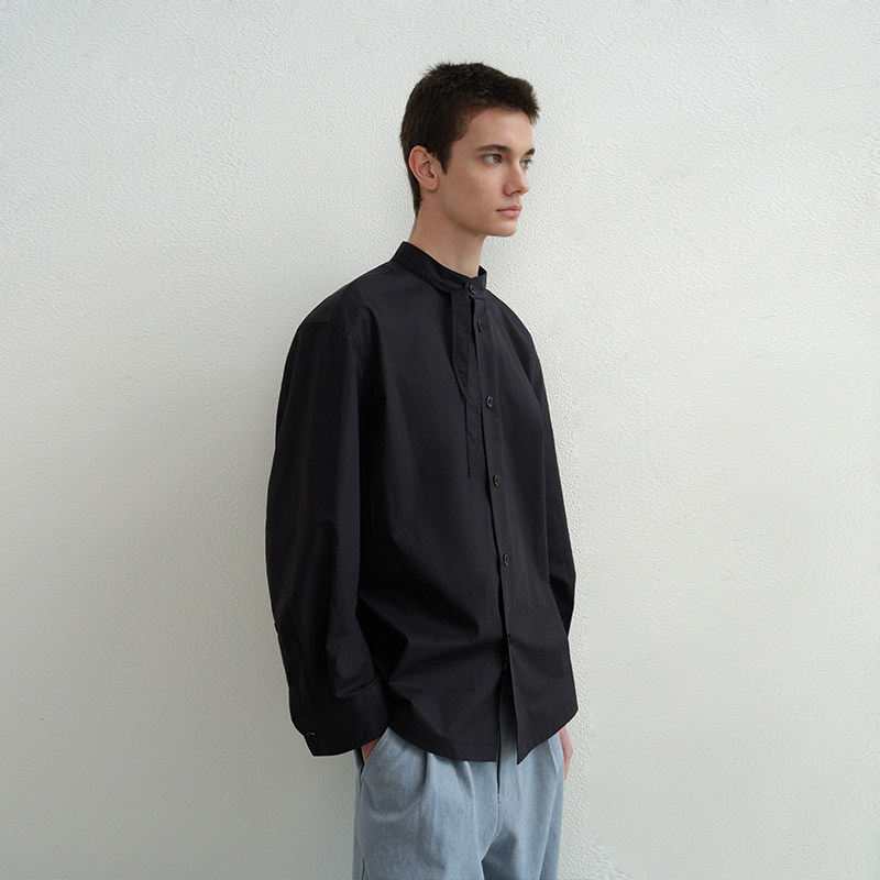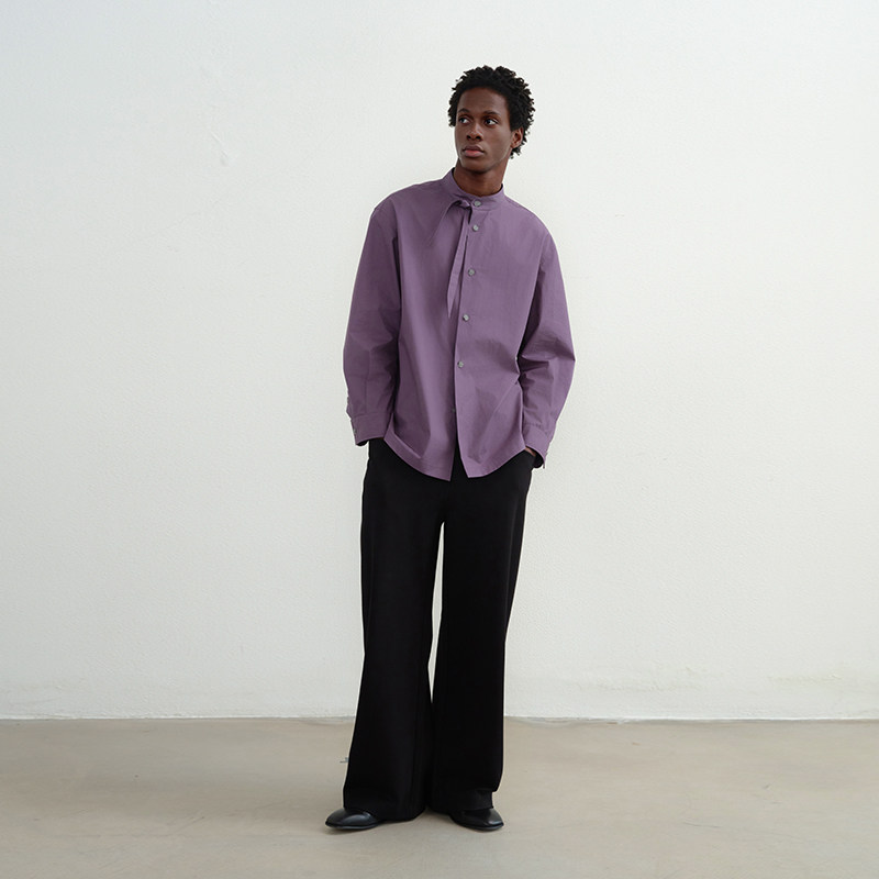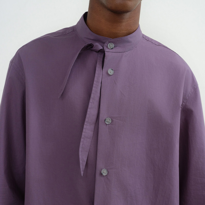 DUPU 四季款立领飘带纯棉衬衫 轻奢质感百搭立体版型高级紫色衬衫