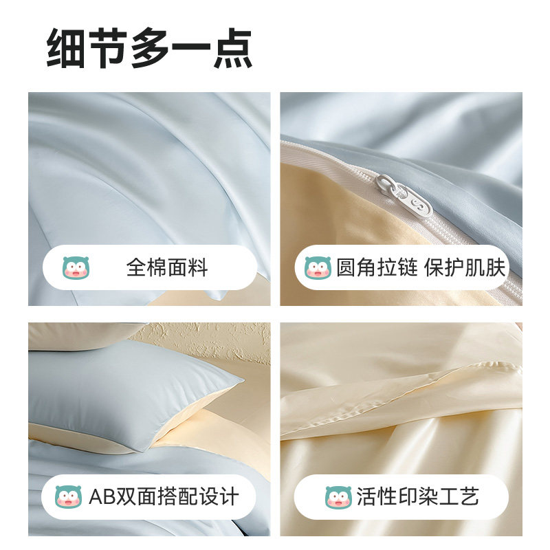 A类水洗棉双层纱四件套被罩非全棉纯棉床单人学生宿舍被套三件套