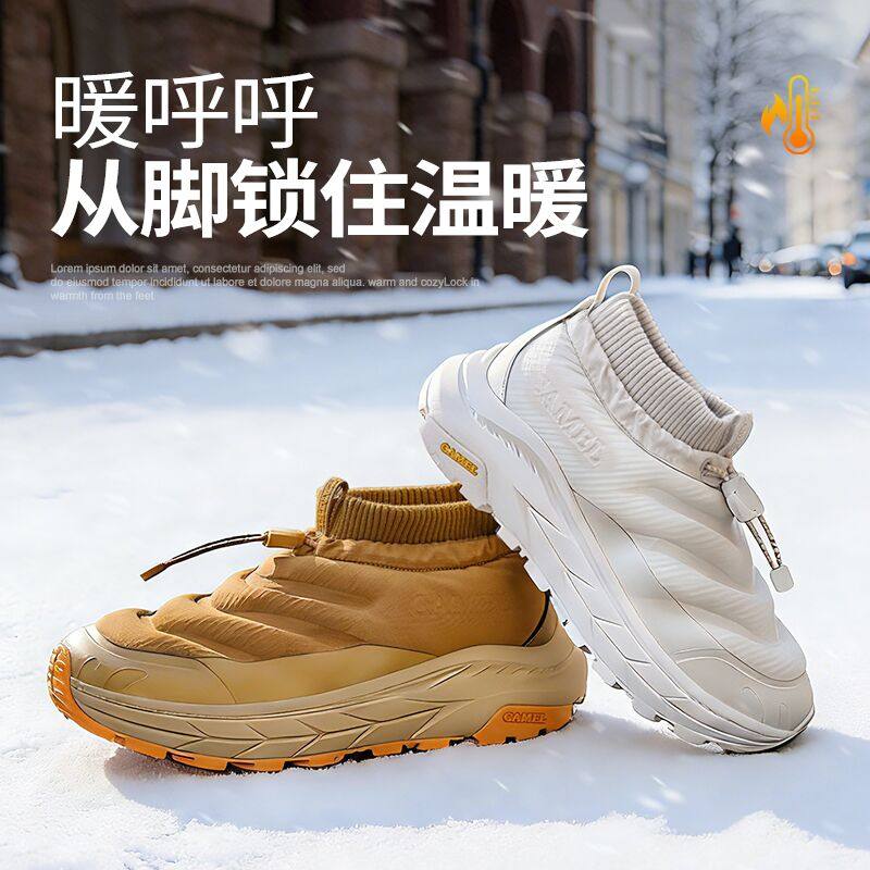 骆驼雪神棉鞋男2025新款冬季加绒加厚防寒户外防滑保暖雪地靴女款