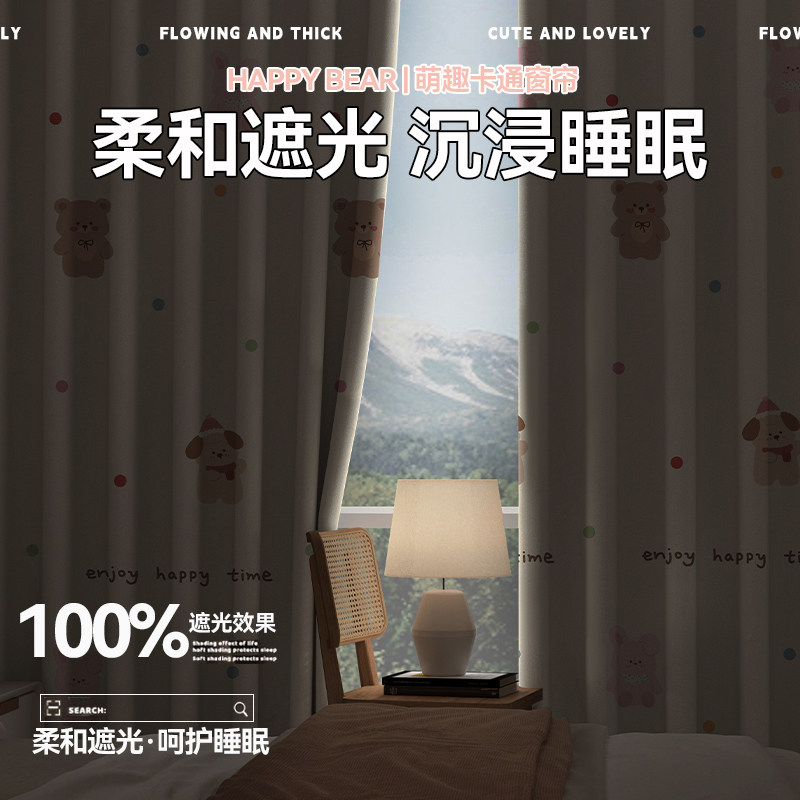 窗帘出租房伸缩杆隔断帘免打孔挂钩印花儿童卧室客厅遮阳布门帘子