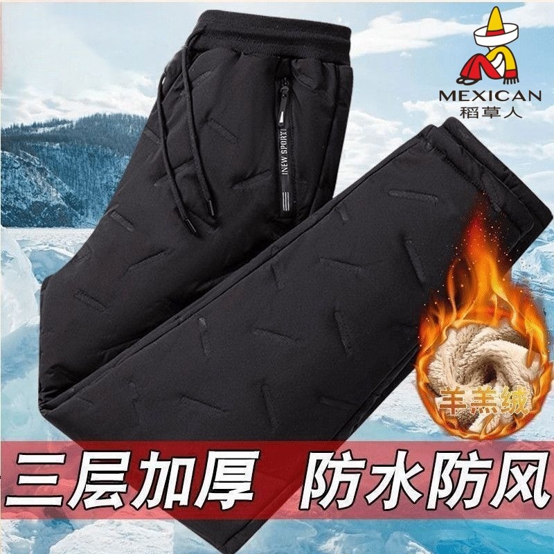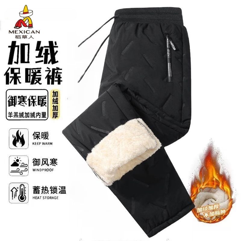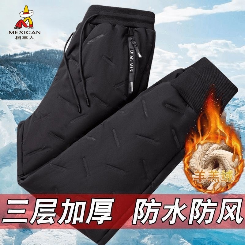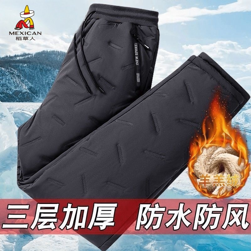 稻草人羊羔绒棉裤男士冬季加绒加厚保暖防风防水外穿宽松休闲裤子