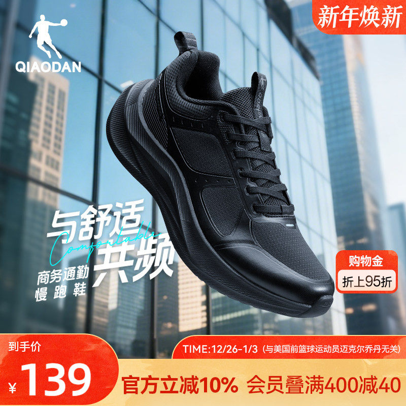 乔丹皮面防水黑色男鞋休闲通勤运动鞋冬季减震轻便软底防滑跑步鞋