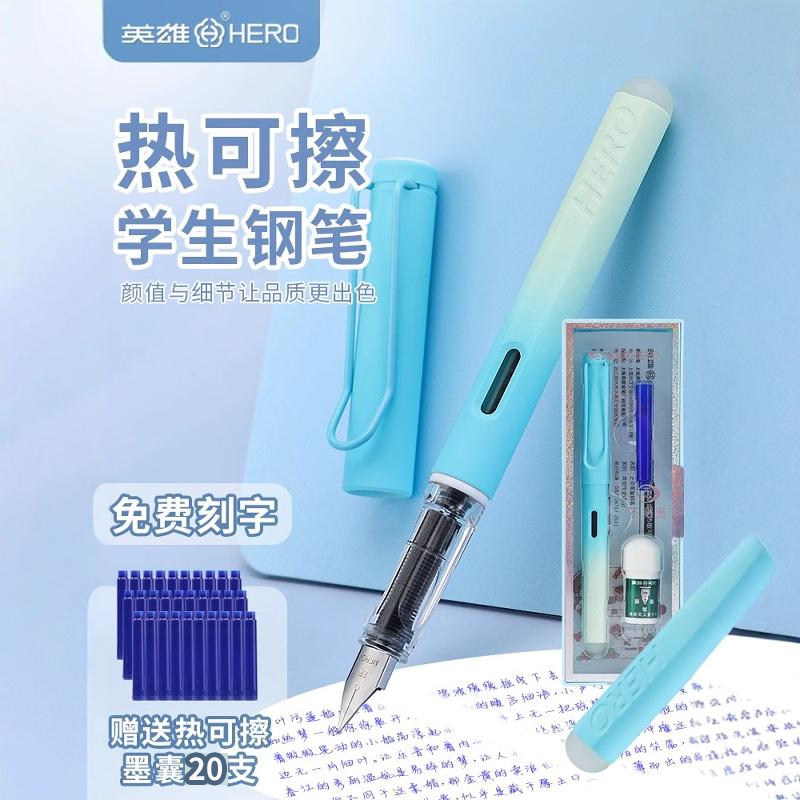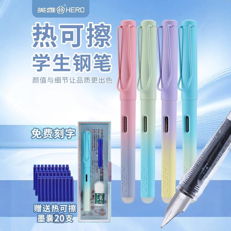 HERO/英雄1359夏日多肉热敏可擦渐变钢笔小学生三年级练字专用墨囊钢笔免费刻字通用可替换墨囊