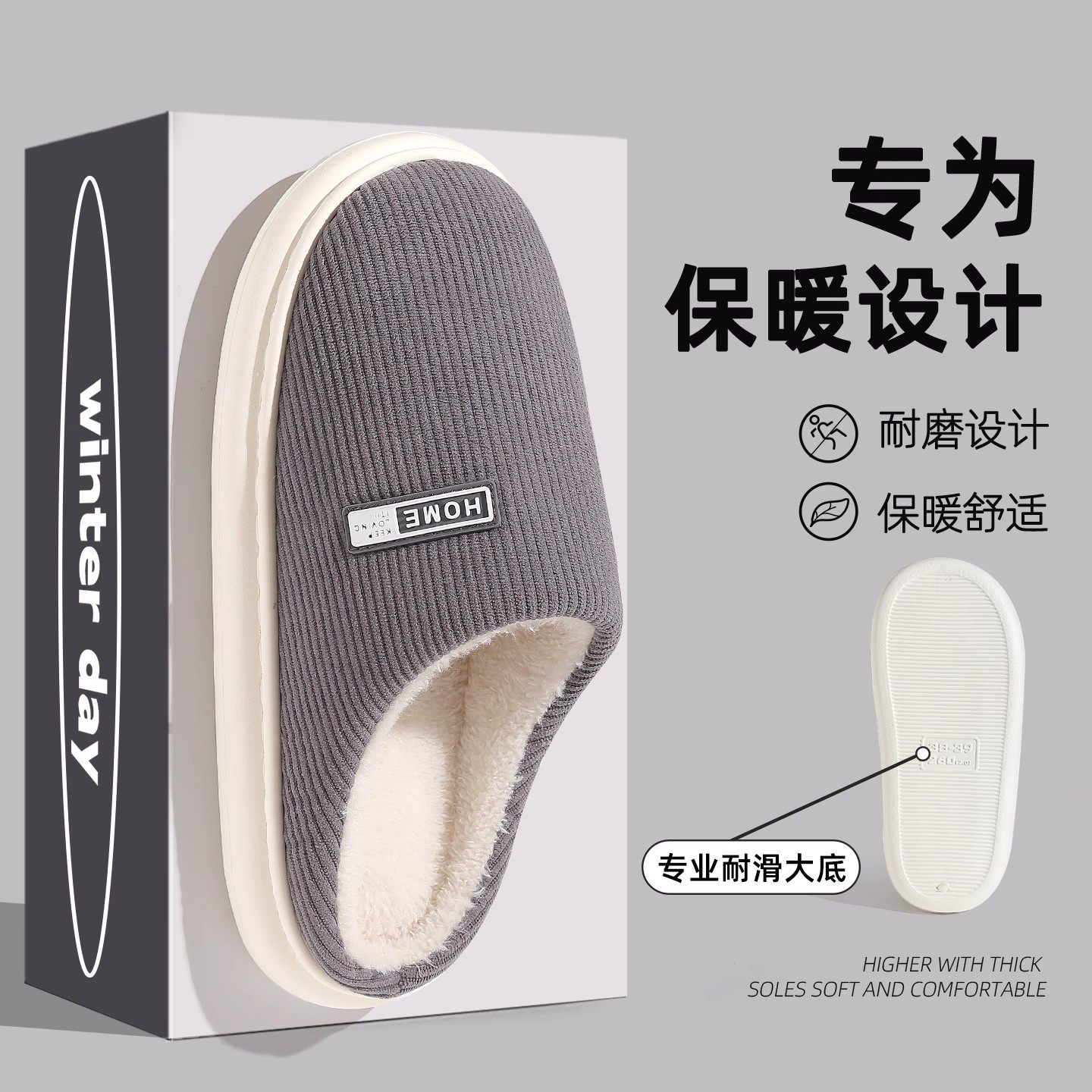 红豆踩屎感棉拖鞋女士秋冬季室内家居2025新款毛绒保暖情侣棉拖男