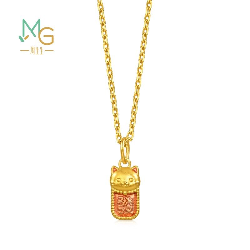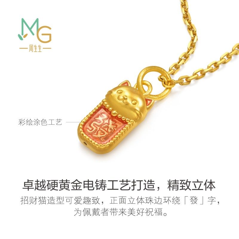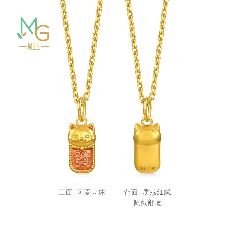 圣诞礼物周生生mini发财猫黄金小吊坠足金挂坠项坠礼物96215P