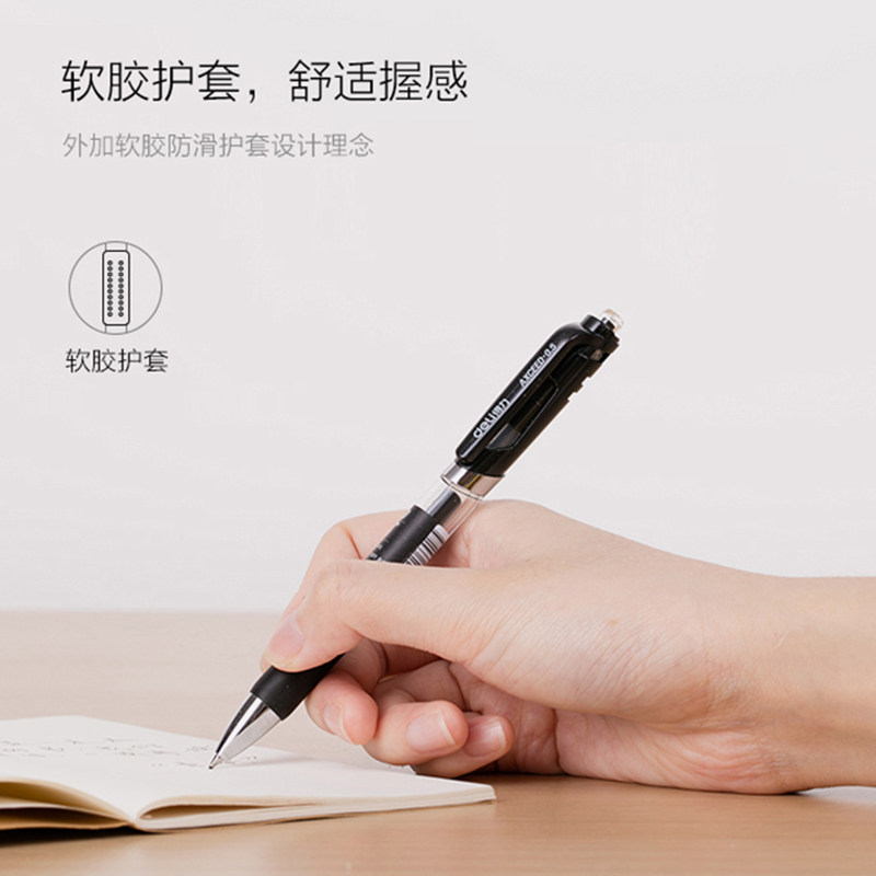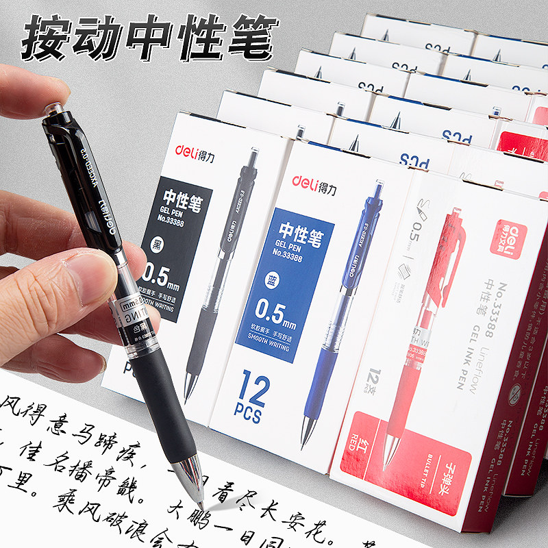 得力按动中性笔0.5mm简约商务办公蓝红黑色水笔碳素签字笔可爱创意ins简约学生考试专用摁动式文具笔芯批发