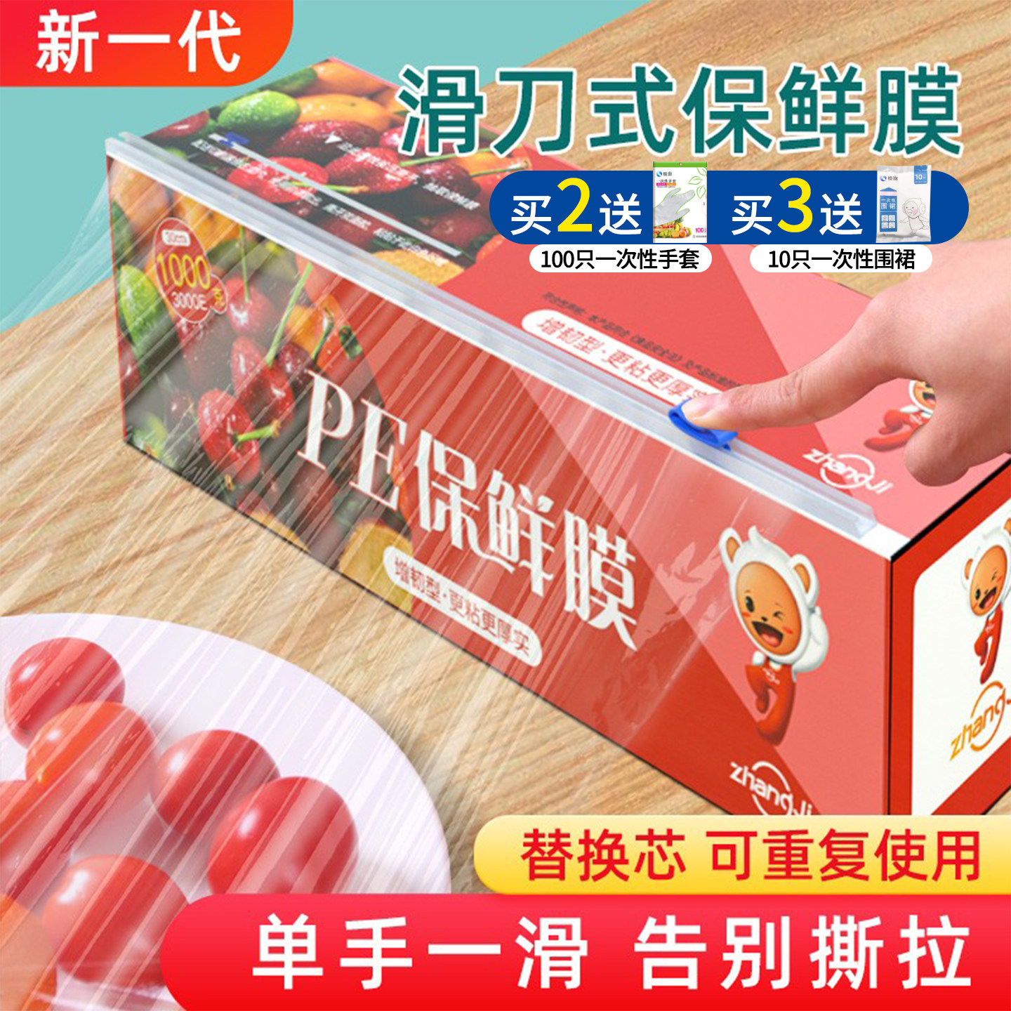 滑刀式PE食品切割器一次性家用食品级保鲜膜厨房耐高温大卷装盒装