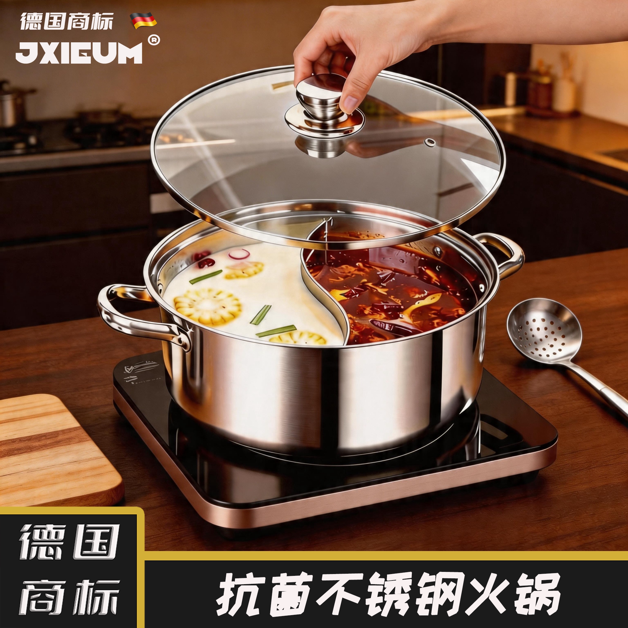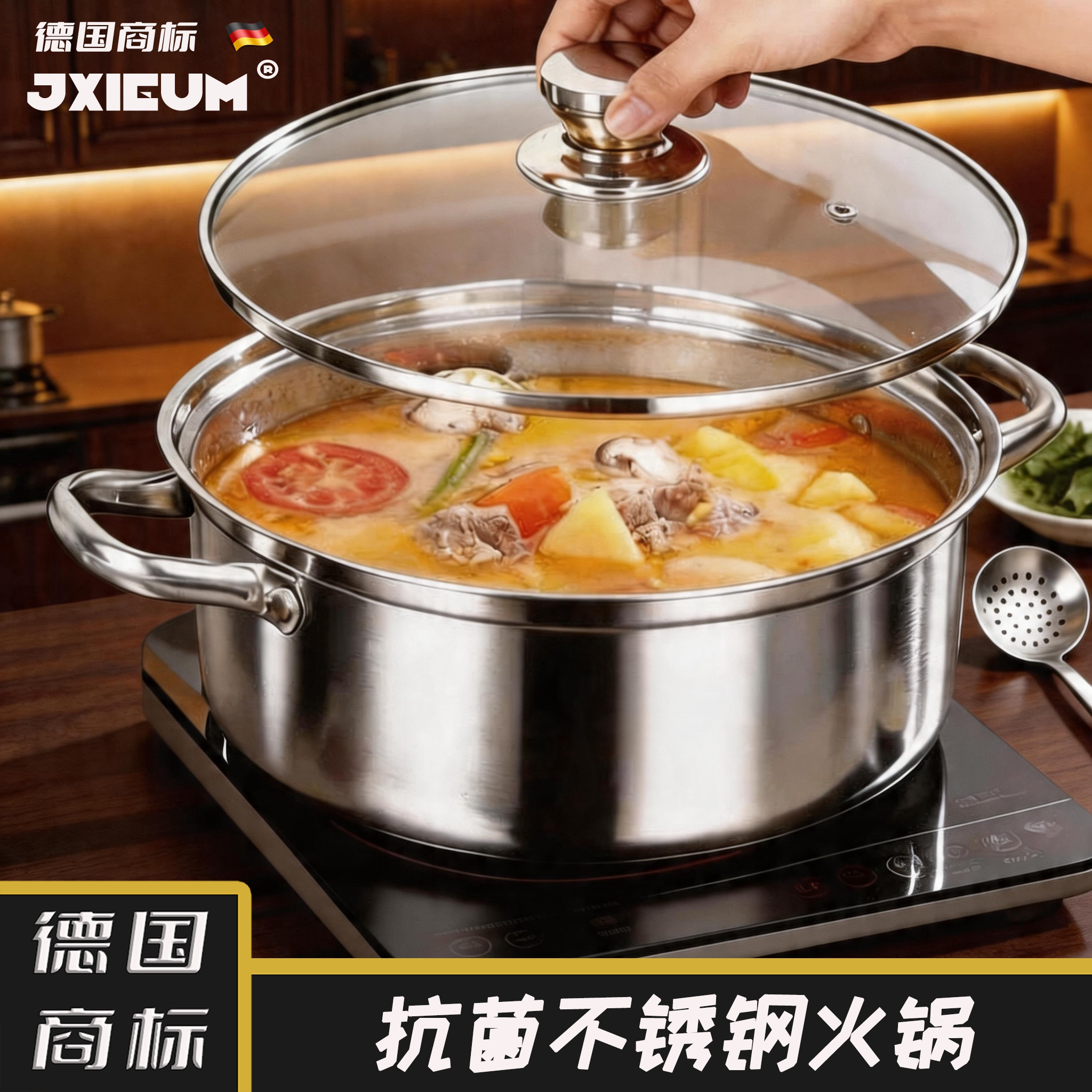 德国食品级不锈钢加厚火锅锅具家用煮锅电磁炉专用清汤火锅盆