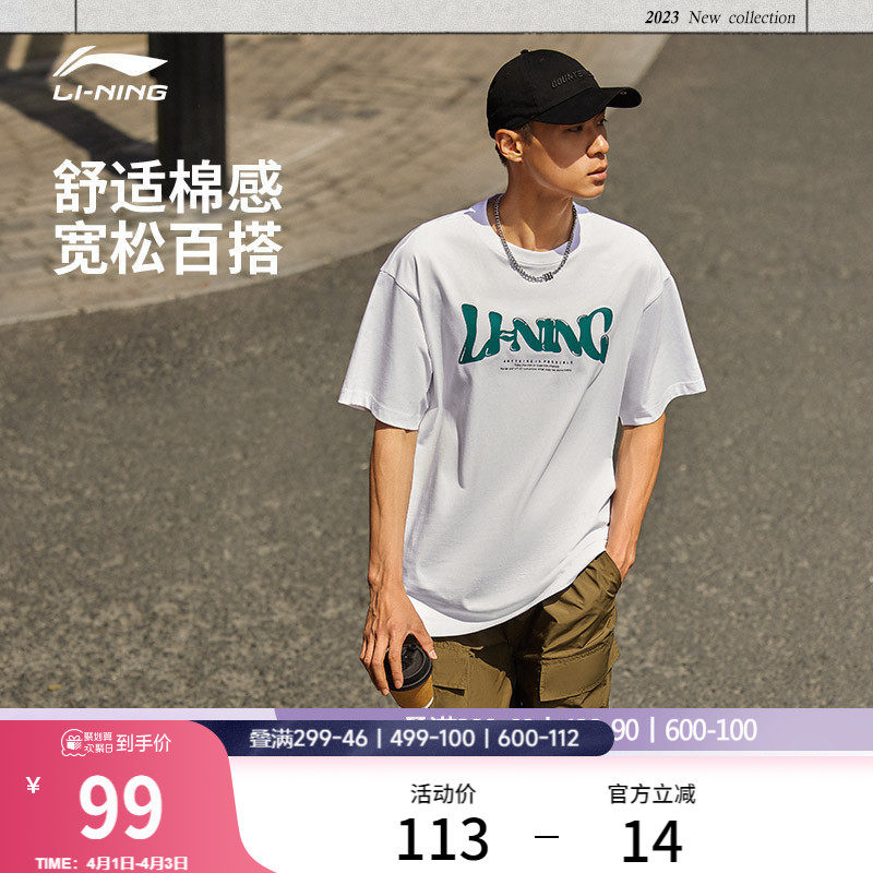 李宁短袖男士春夏官方半袖情侣装运动上衣男装体恤宽松白色T恤女