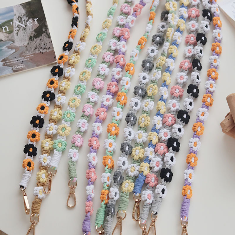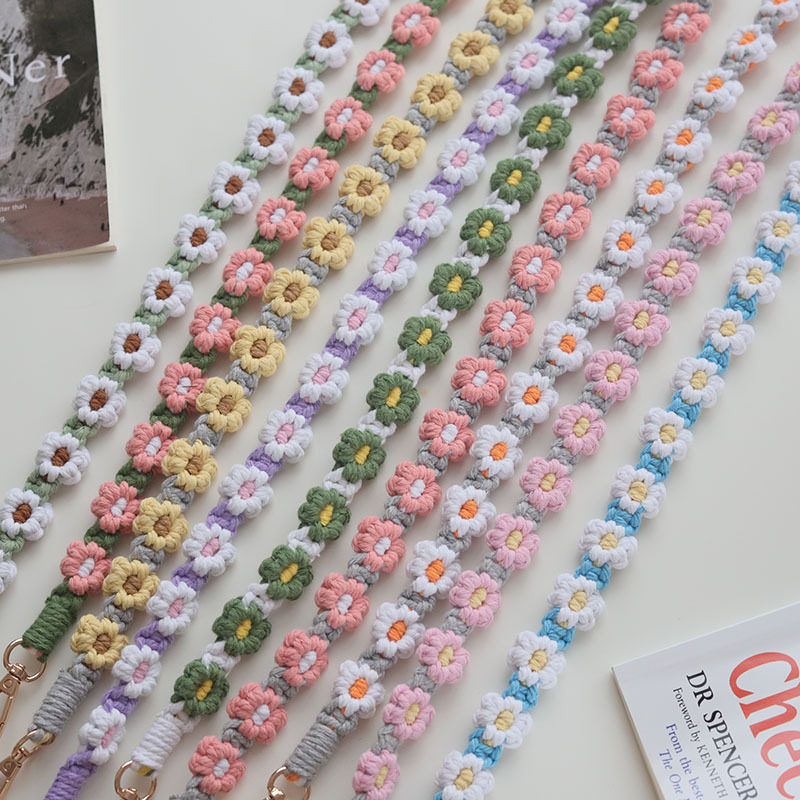 厂家直销跨境热卖波西米亚编织雏菊花朵工牌脖挂绳手机挂绳背带女