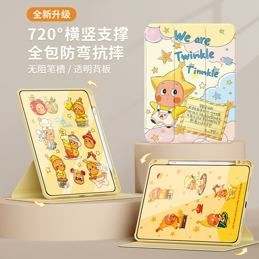适用ipad11保护壳2025新款第10/9代保护套air7/6全包pro2018旋转mini5/4/3防摔弯苹果平板a16带笔槽云上星星2