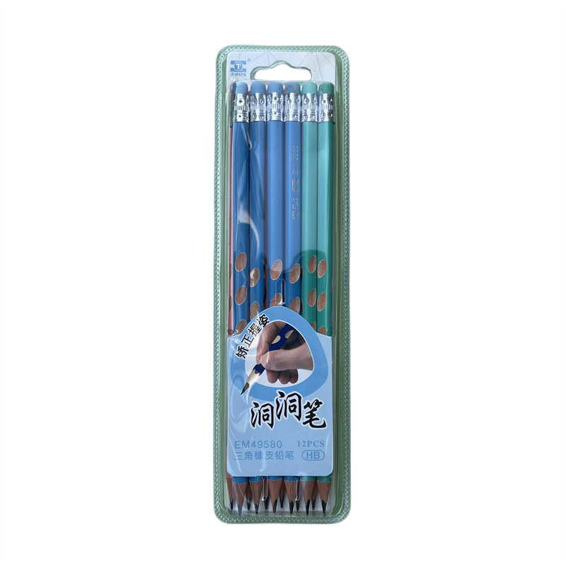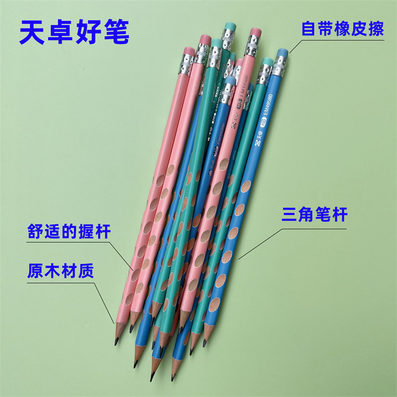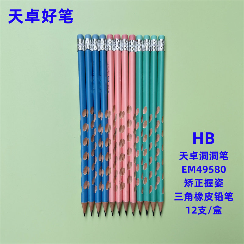 天卓好笔 三角木杆橡皮擦铅笔小学生幼儿书写正姿HB洞洞笔EM49580