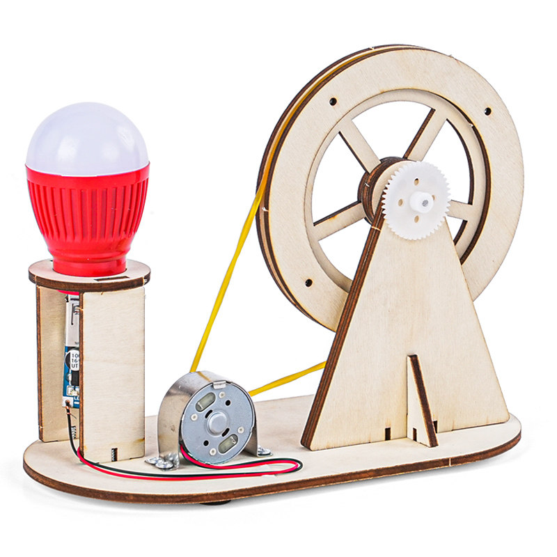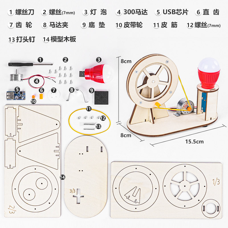 手摇发电大灯泡USB插口手工DIY科技小制作新能源教材料包科学实验