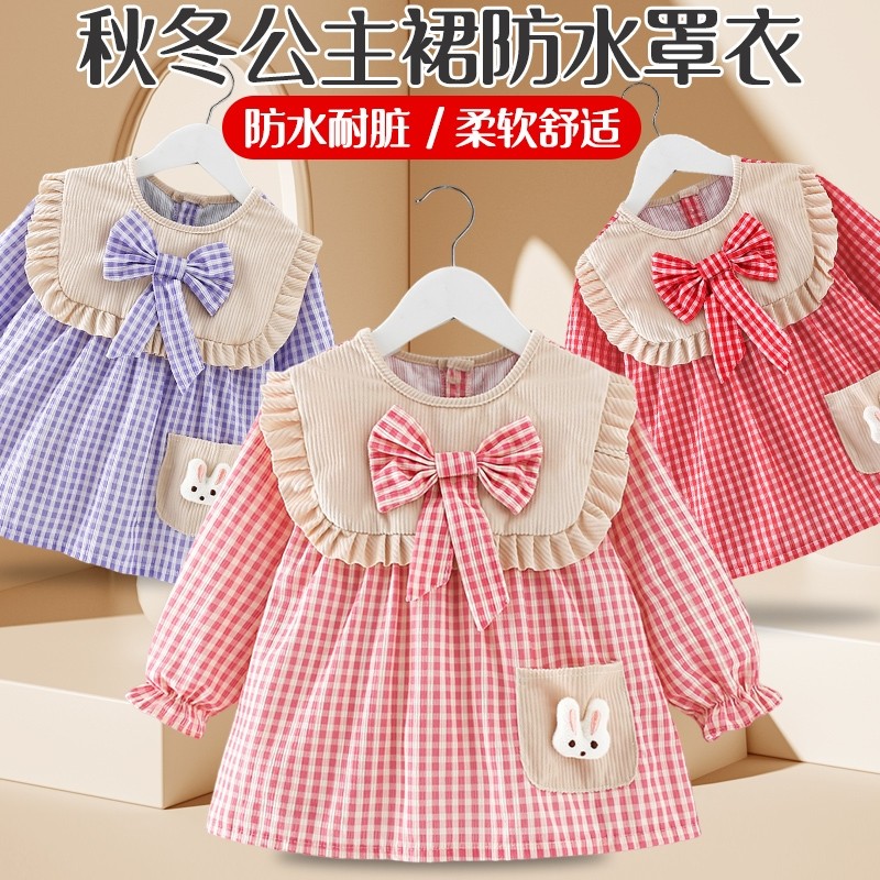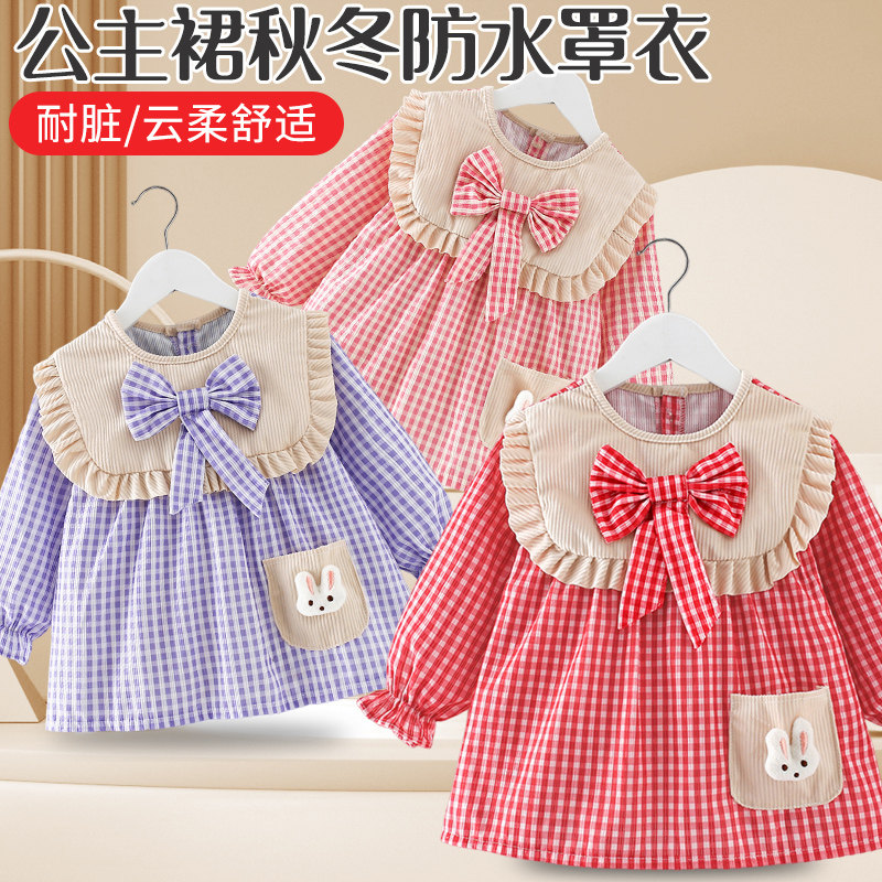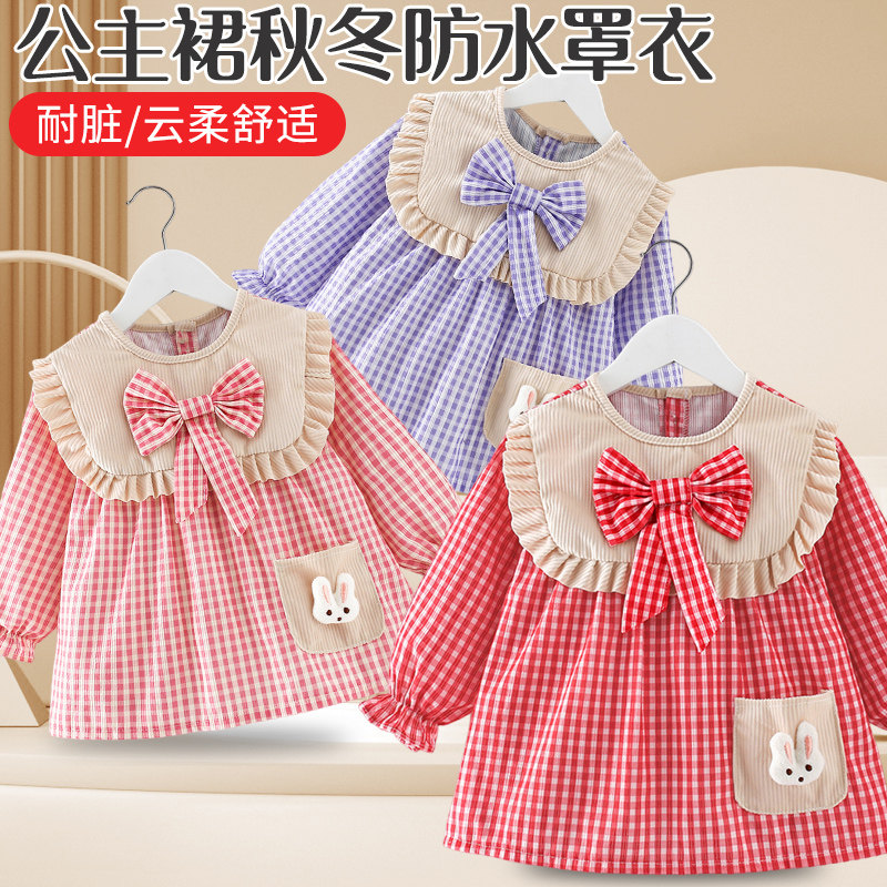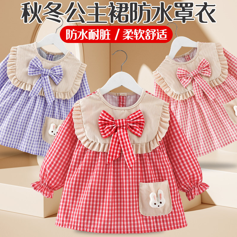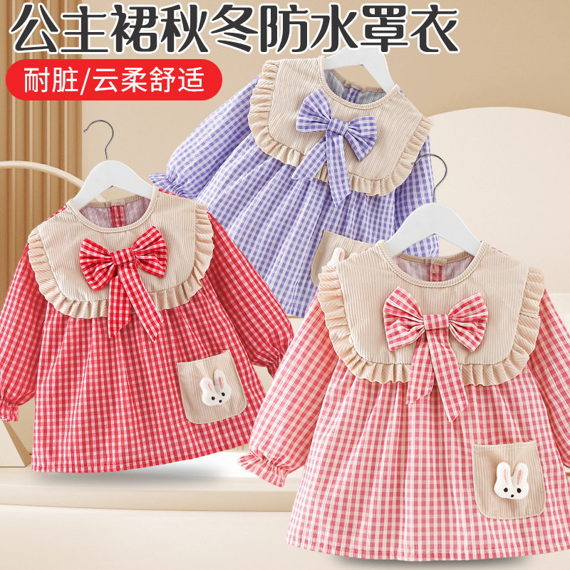 女宝宝罩衣秋冬公主裙吃饭围兜防水防脏儿童围裙婴儿反穿护衣外穿