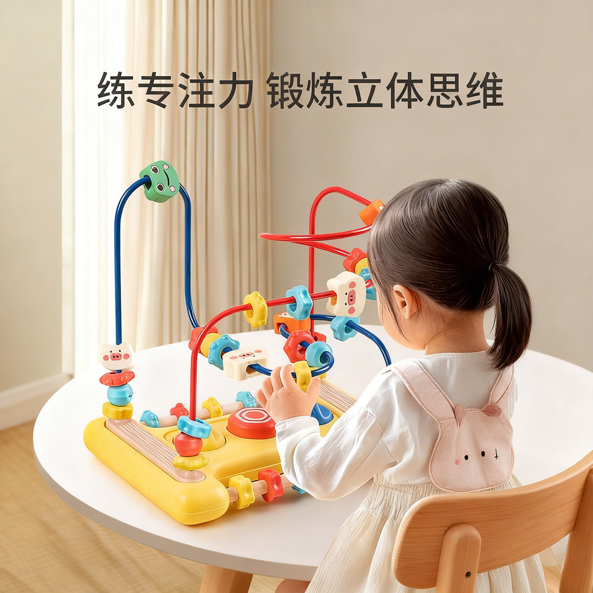 婴幼儿童绕珠蒙氏早教益智积木6串珠7八9十12个月0一1岁8宝宝玩具
