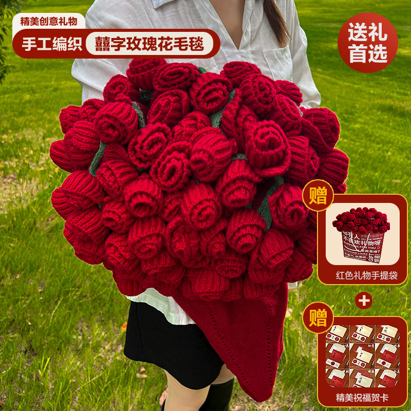 成品向日葵玫瑰花束毛毯子手工编织生日礼物女生送闺蜜跨新年元旦