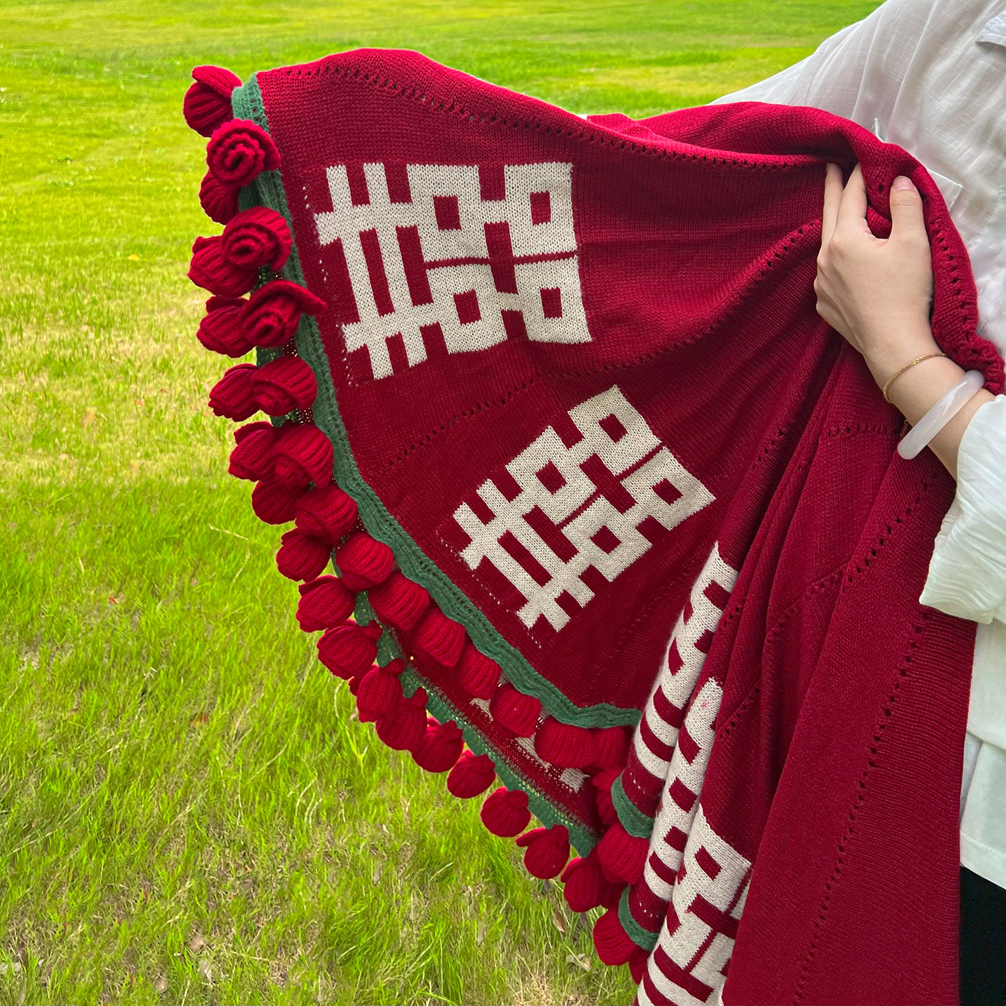 结婚陪嫁玫瑰花毯花束玫瑰毯子玫瑰花毛毯成品玫瑰花束毯花毯子