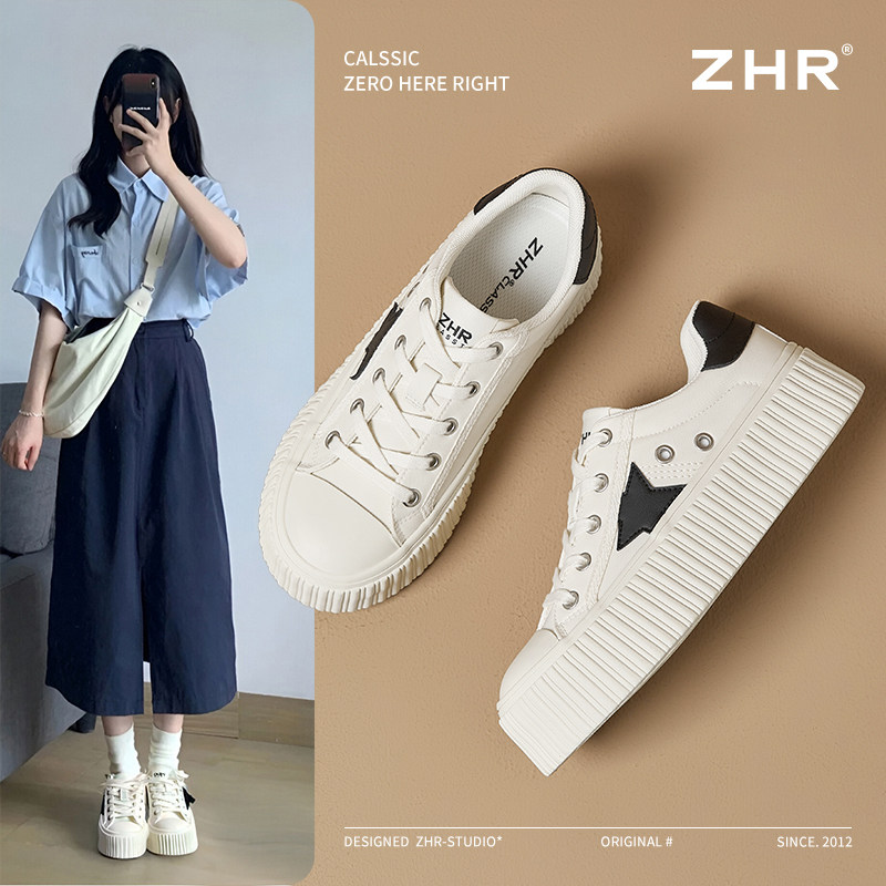 人本德训鞋女2025新款春秋厚底小白鞋女鞋休闲百搭增高舒适板鞋子