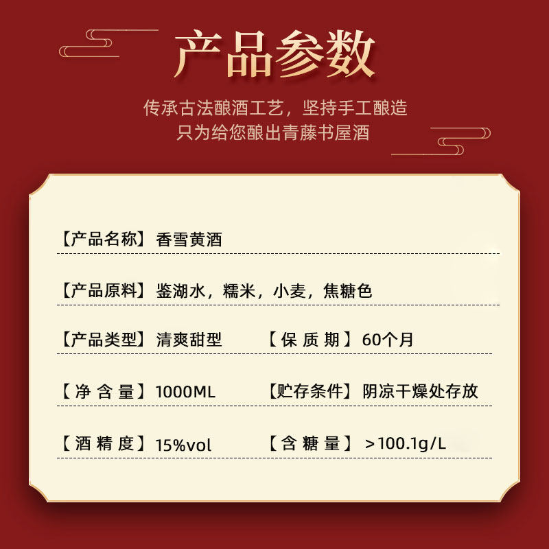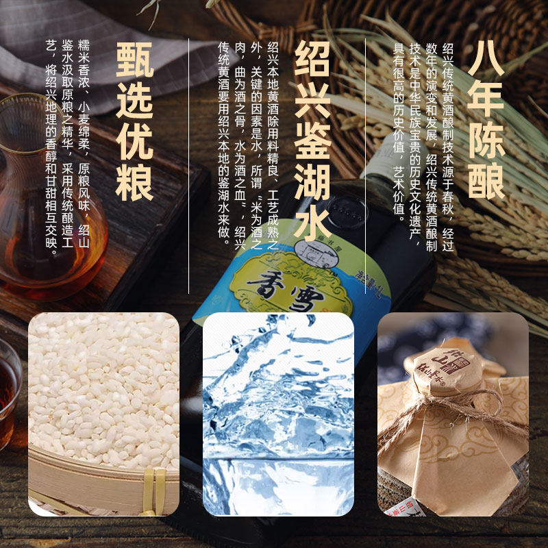 青藤书屋八年陈香雪黄酒2斤瓶装 绍兴甜型花雕加饭酒阿胶糯米老酒