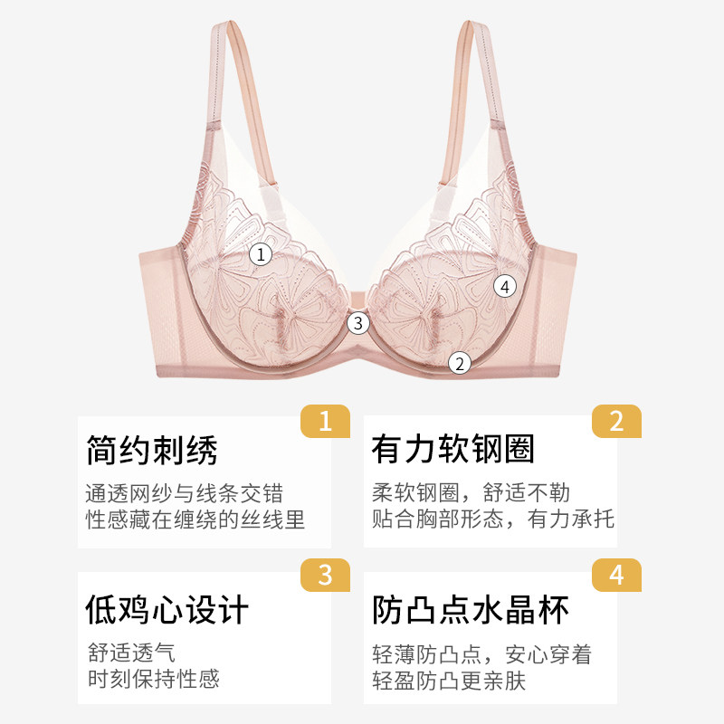 桑扶兰蕾丝内衣大胸显小2025秋性感大码显瘦刺绣防下垂薄文胸