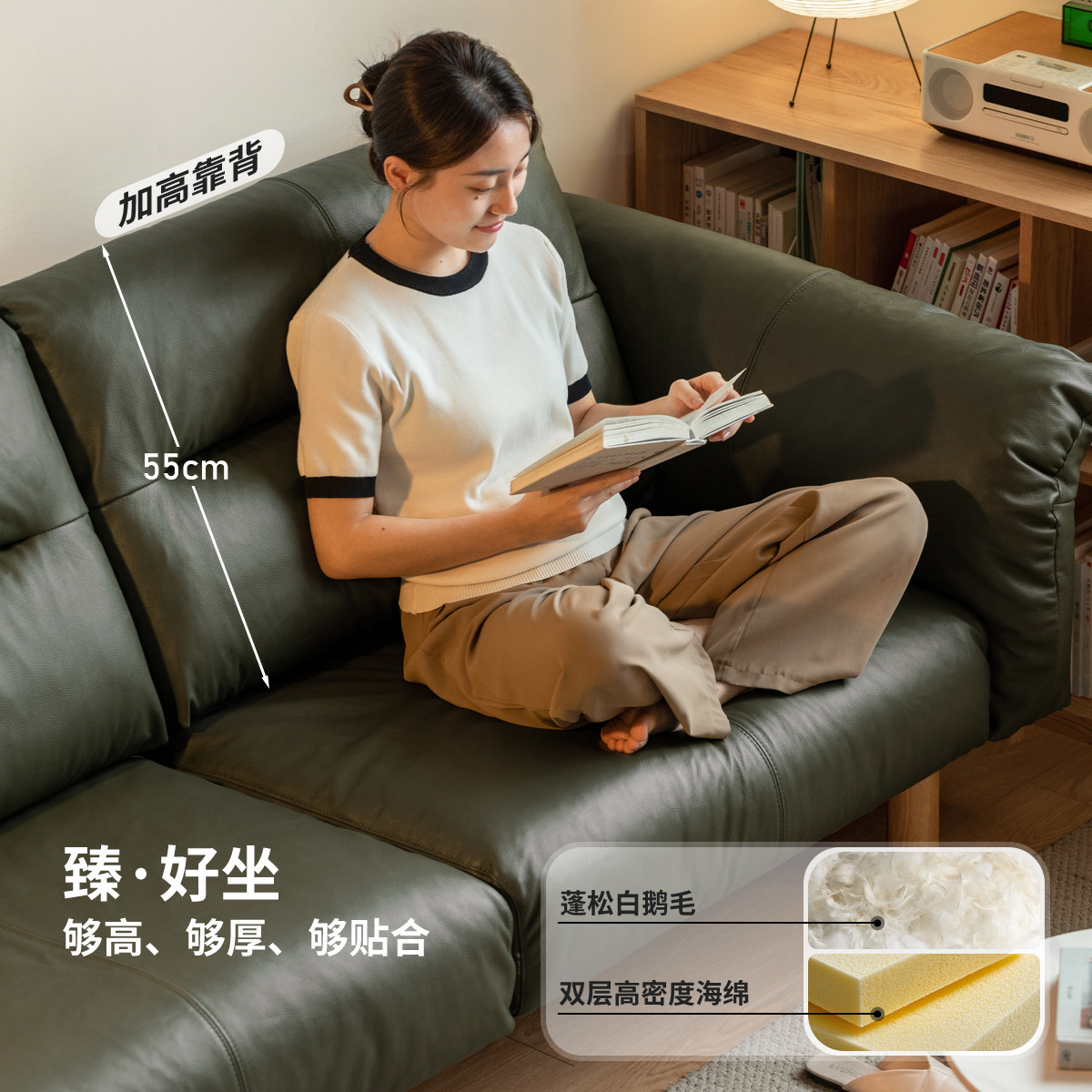 源氏木语实木沙发客厅现代简约小户型真皮沙发家用橡木胡桃色沙发