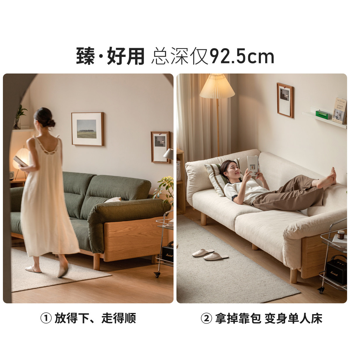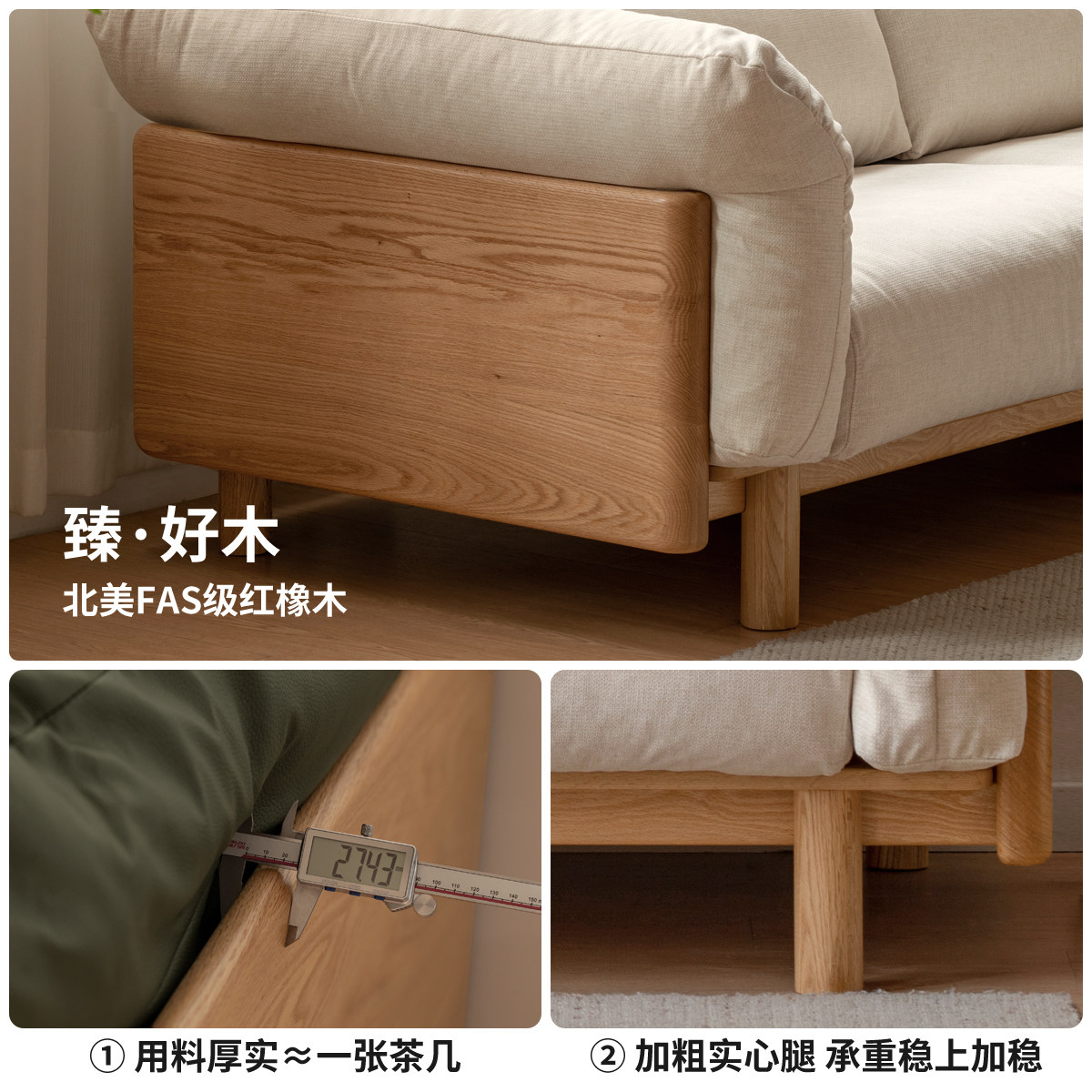 源氏木语实木沙发现代简约高靠背布艺沙发客厅小户型橡木直排沙发
