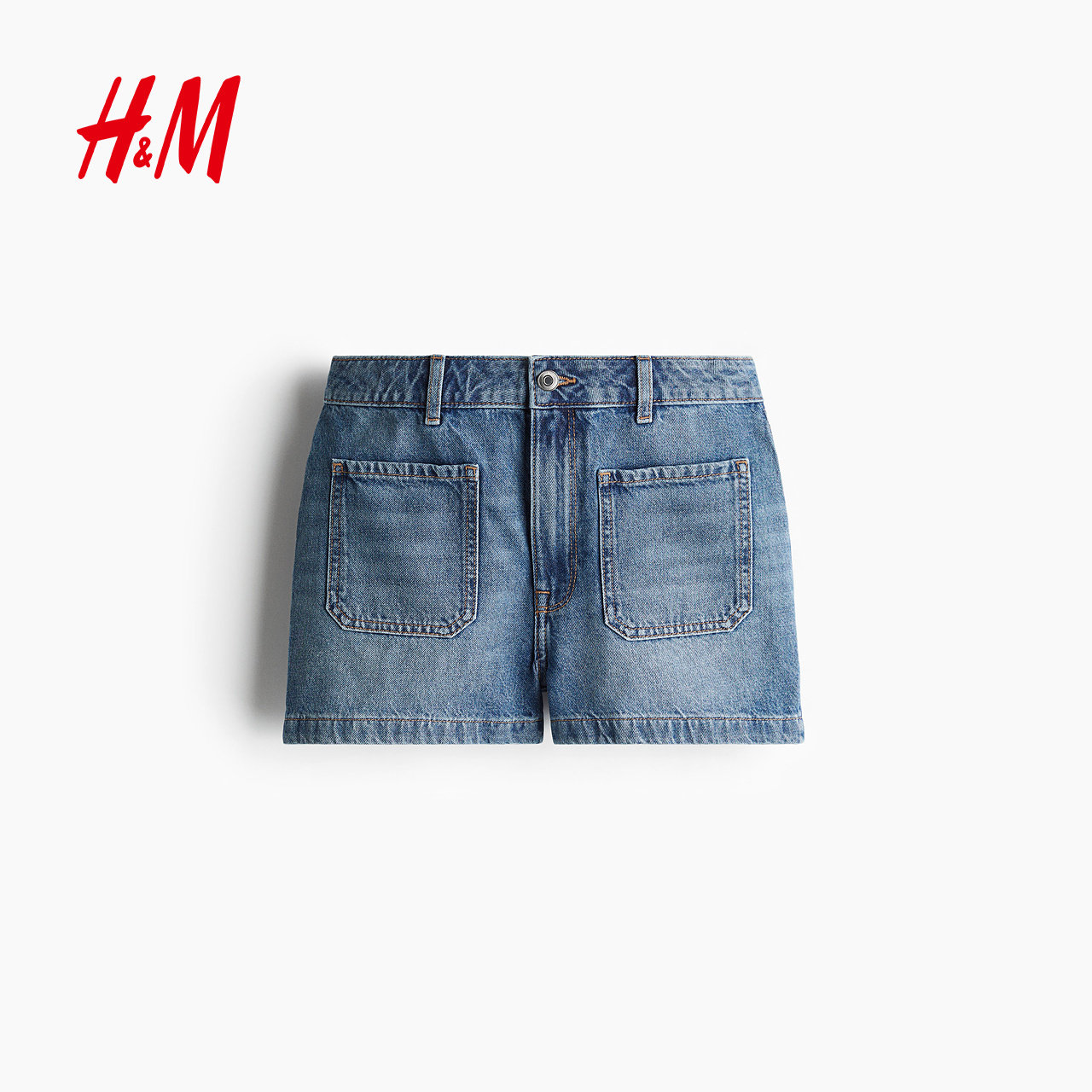 HM女装牛仔裤春季通勤时尚高腰丹宁休闲辣妹短裤1285168