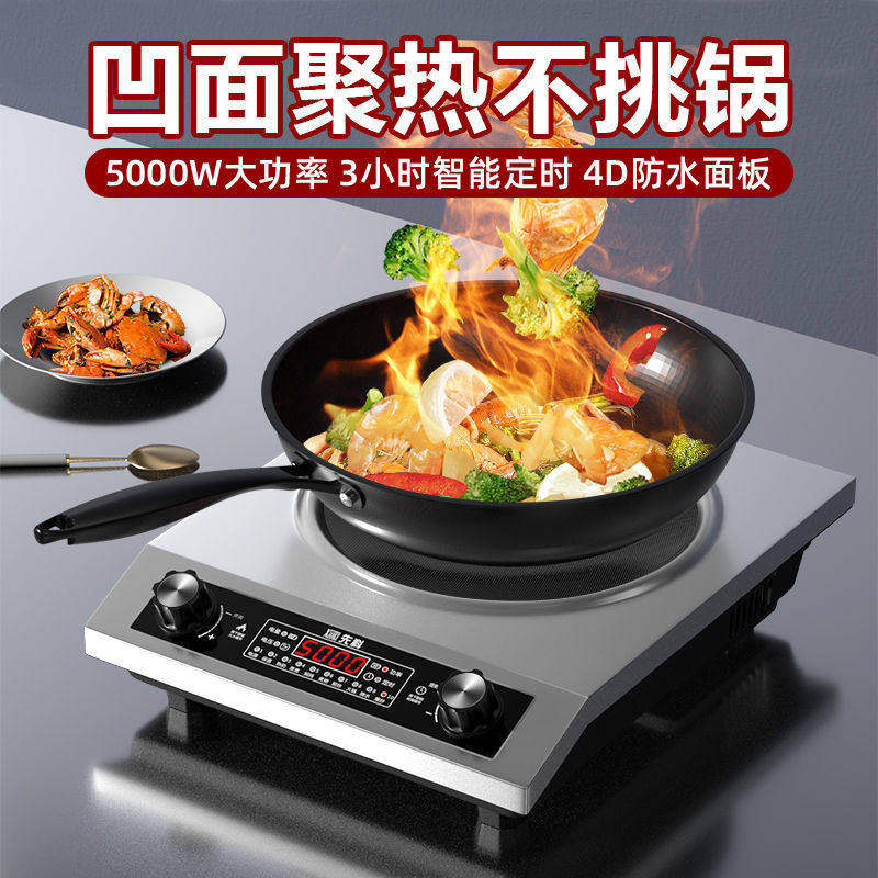 XIANKE/先科凹面电磁炉家用大功率5000W商用炒菜锅一体猛火灶套装