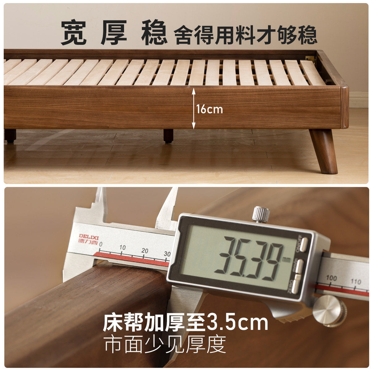 实木床现代简约胡桃木主卧1.5米双人床1.8米主卧轻奢婚房双人床