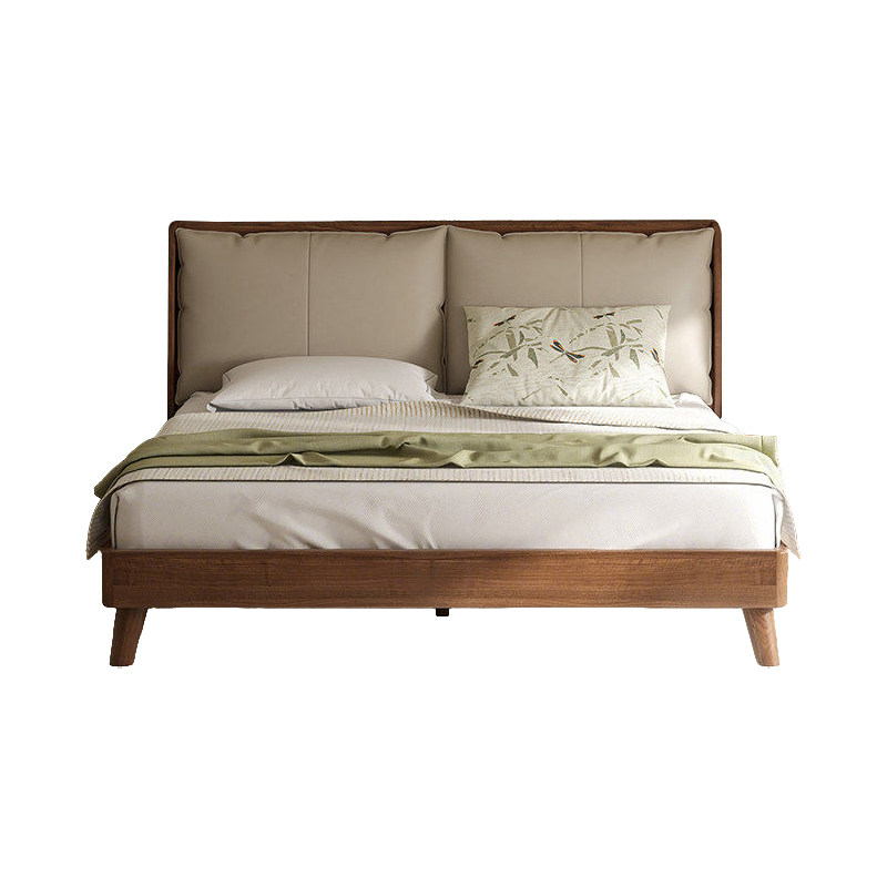 司朴黑胡桃木软包真皮床现代简约主卧1米8实木双人床轻奢卧室床