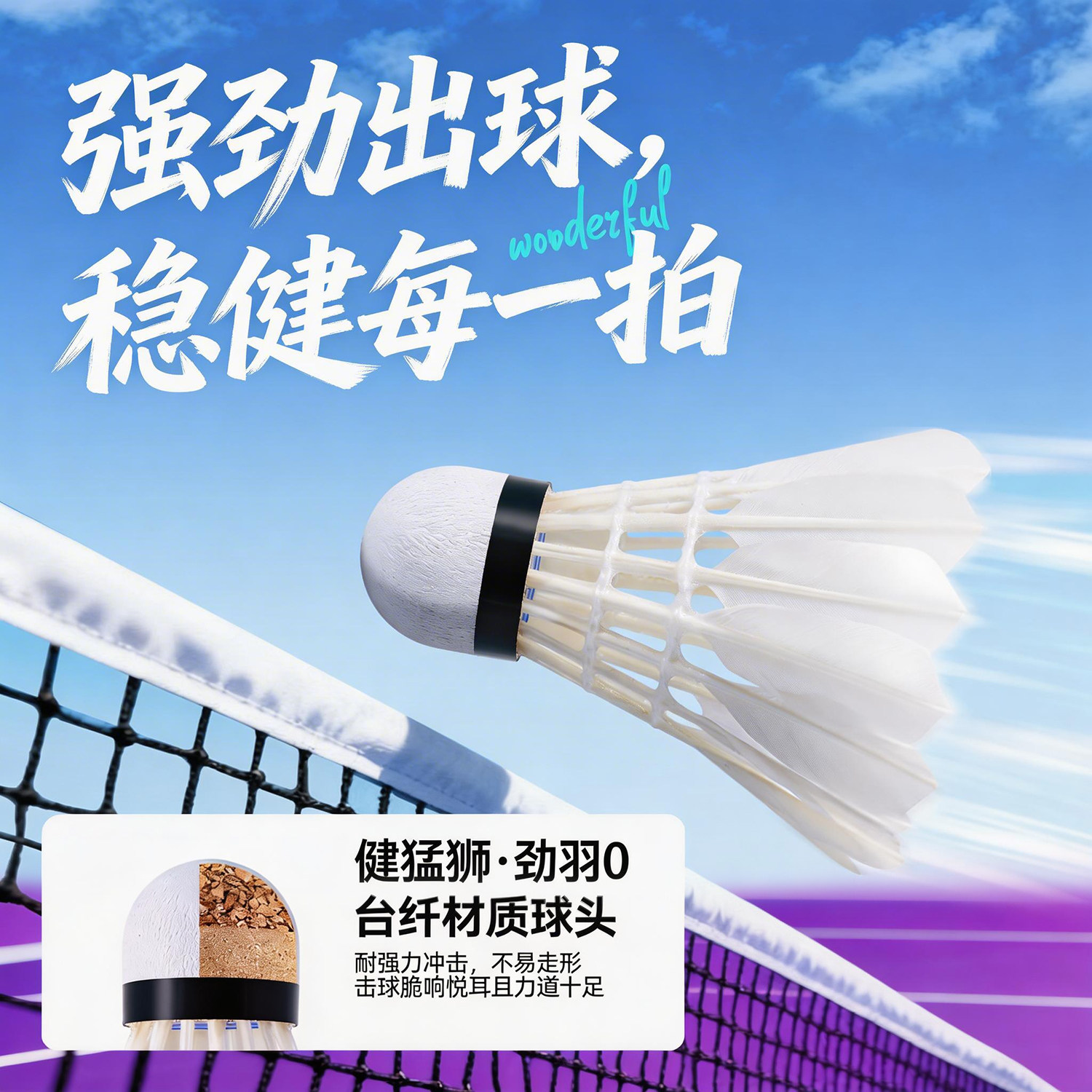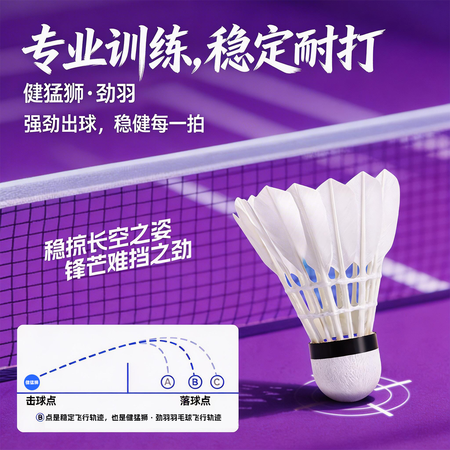 健猛狮羽毛球鹅毛12只装耐打王白色黑训练专业比赛防风耐打球正品